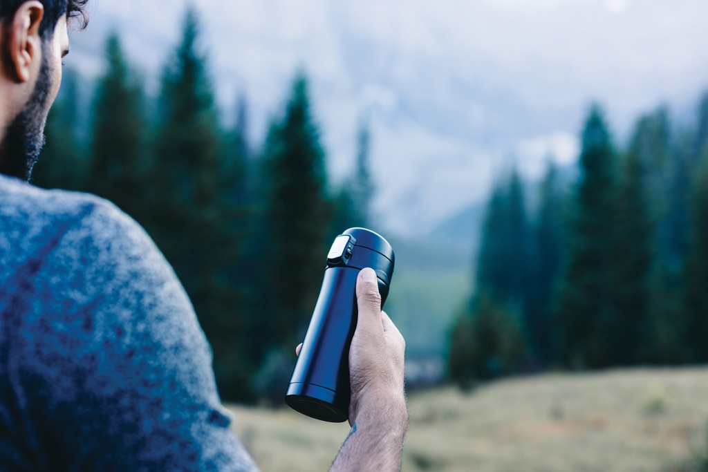 This great double wall stainless steel vacuum mug keeps your drink warm for up to 5 hours or cool for up to 15 hours. The lid is lockable and therefore avoids any risk of leaking or spilling. The lid is easy to keep clean for optimal hygiene and is dishwasher safe. The unique design of the mug allows you to drink conveniently and safely with one hand directly from the mug. The size of the mug is suitable to place in any car drink holder. Made with RCS (Recycled Claim Standard) certified recycled materials. RCS certification ensures a completely certified supply chain of the recycled materials. Total recycled content: 71% based on total item weight. BPA free. Capacity 300ml. Including FSC®-certified kraft packaging.
