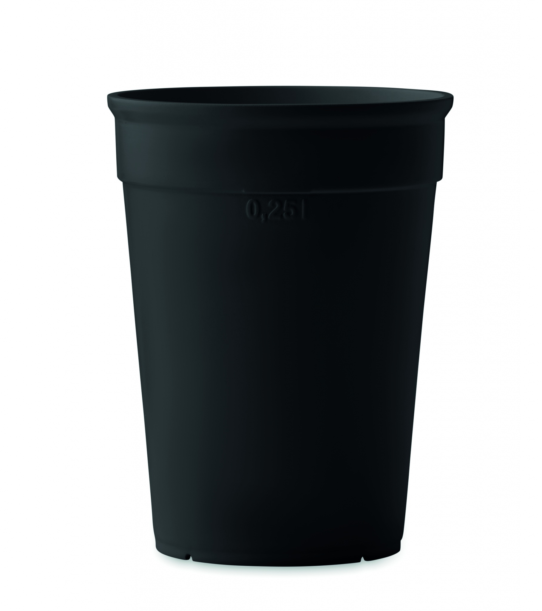 Reusable single wall coffee cup in recycled PP. Capacity: 250 ml.