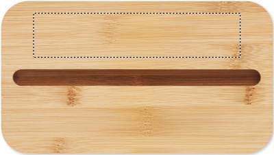 Recycled PP two-tier lunch box with removable divider and 3 cutlery utensils with attachable polyester band with bamboo lid. The lid has a phone stand functionality. Capacity: 400 ml (2x). Bamboo is a natural product, there may be slight variations in colour and size per item, which can affect the final decoration outcome.