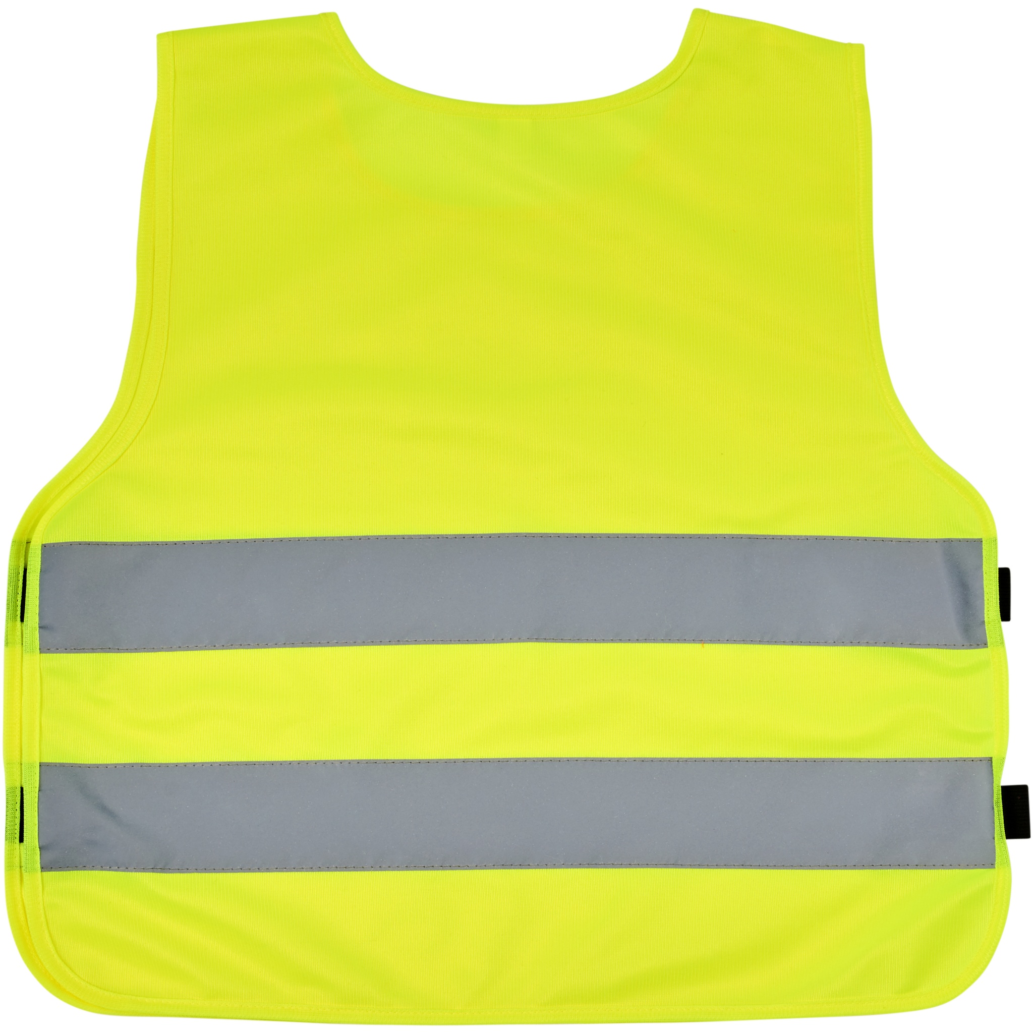 High visibility vest in XXS size suitable for kids age 3-6 years with a height between 70-104 cm. Large decoration area on the front and on the back of the vest. On the shoulder and the bottom elastic bands there are hook & loop closures, that offers extra safety and makes the vest easy to put on. The elastic bands on the other side makes it stretchable allowing easy wearing on thick coats. The vest is tested and certified under regularions EN 1150:1999. It also adheres to the PPE guidelines on application of Regulation (EU) 2016/425 Personal Protective Equipment Category II.