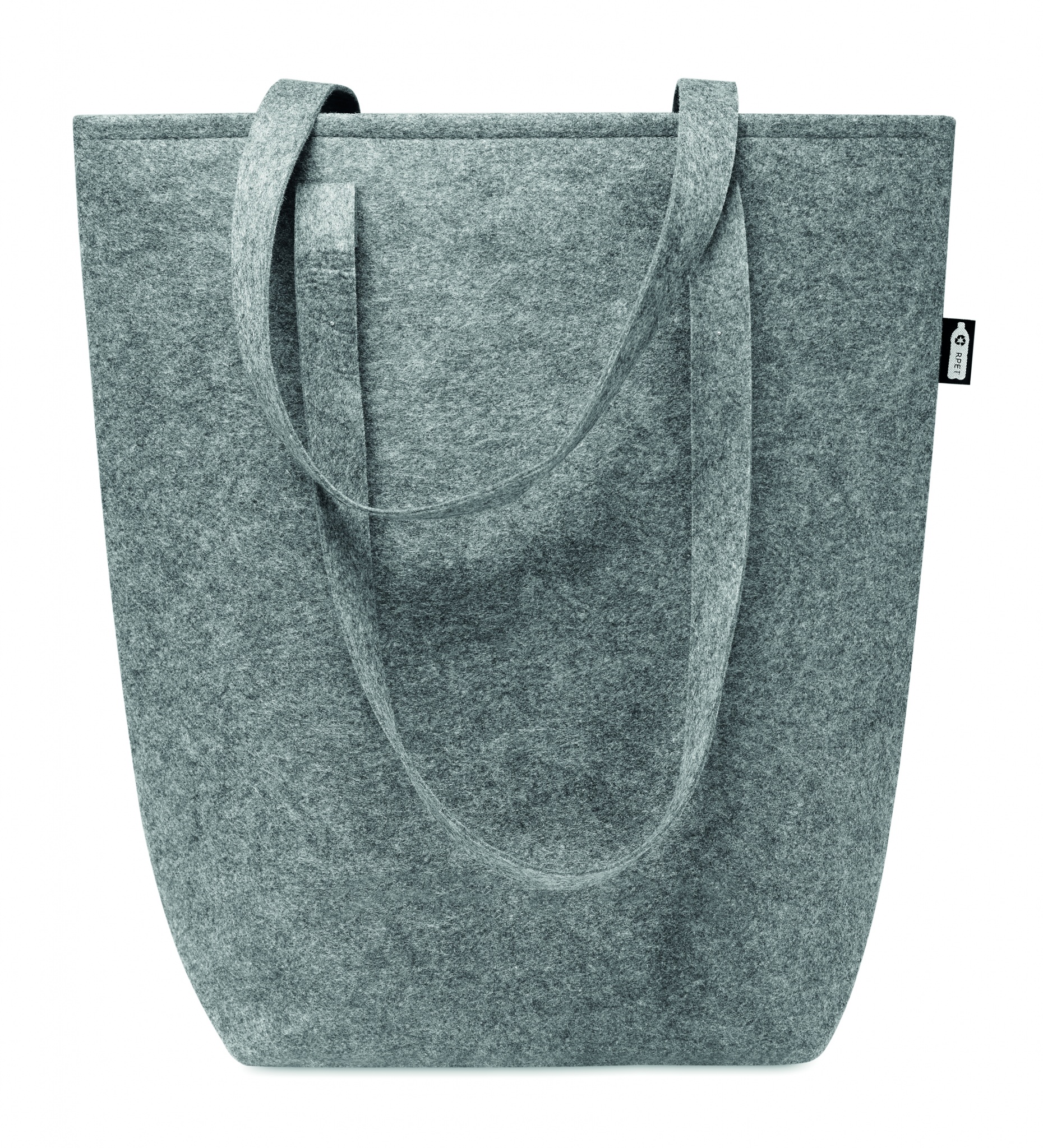 RPET felt shopping bag with long handles and bottom gussets. Felt thickness: 2 mm.