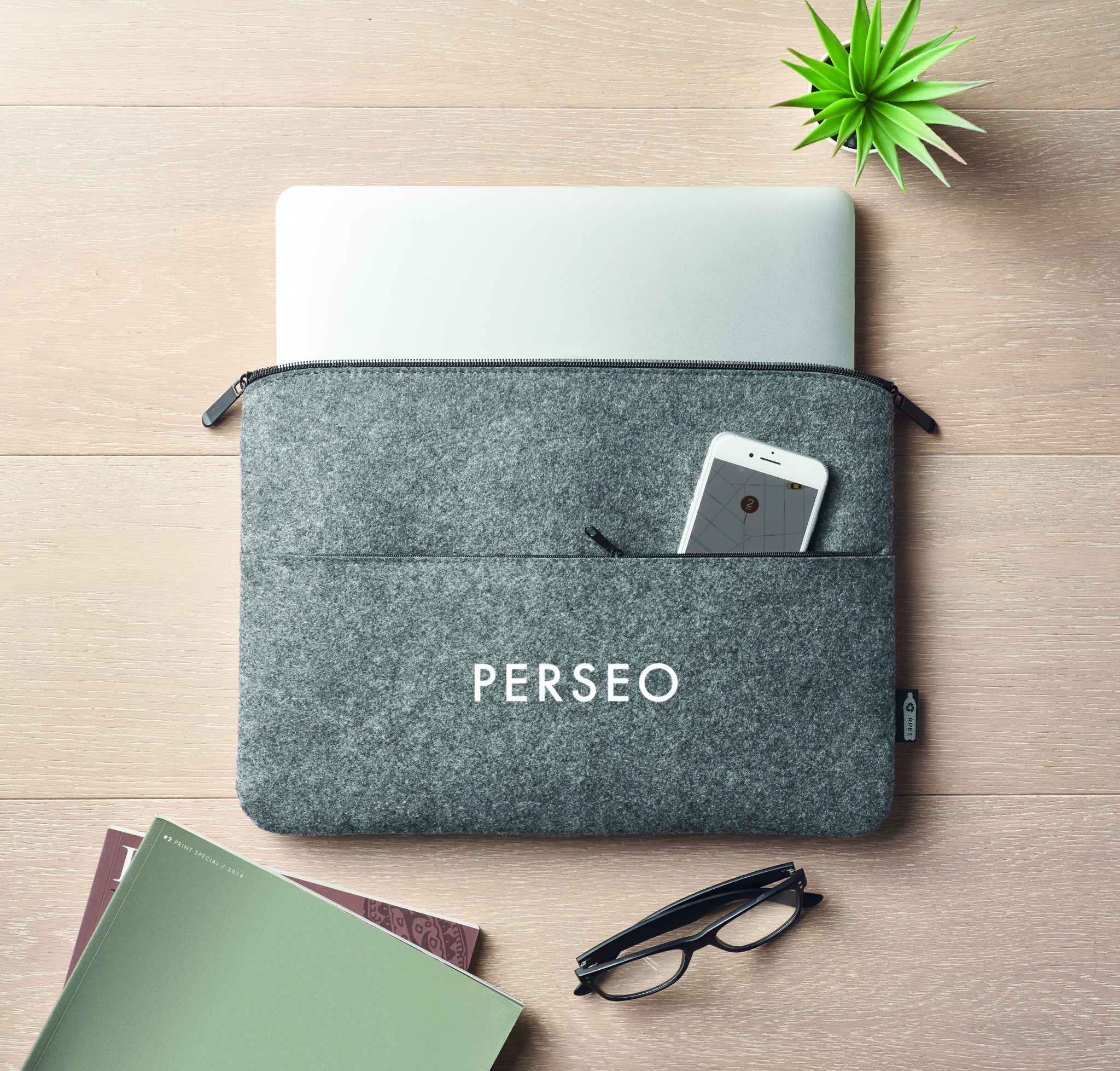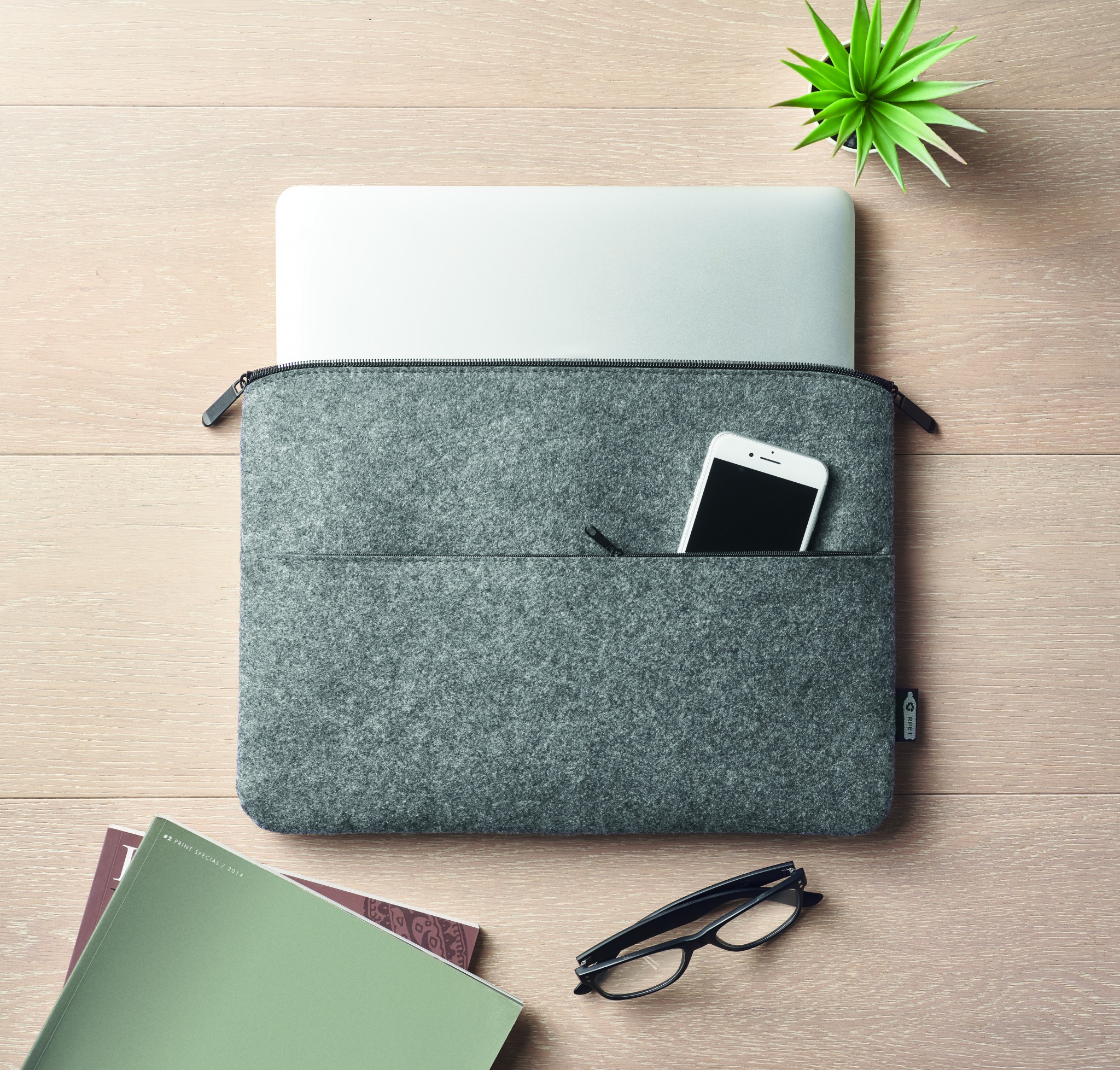RPET felt zipped laptop bag