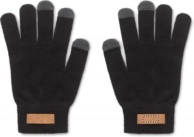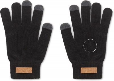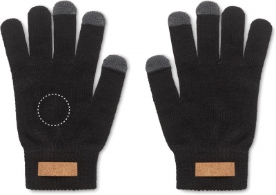 Tactile gloves for smartphone in RPET polyester with cork label for printing area. Cork is 100% natural material. Due to its structural nature and surface porosity the final print result per item may have deviations.