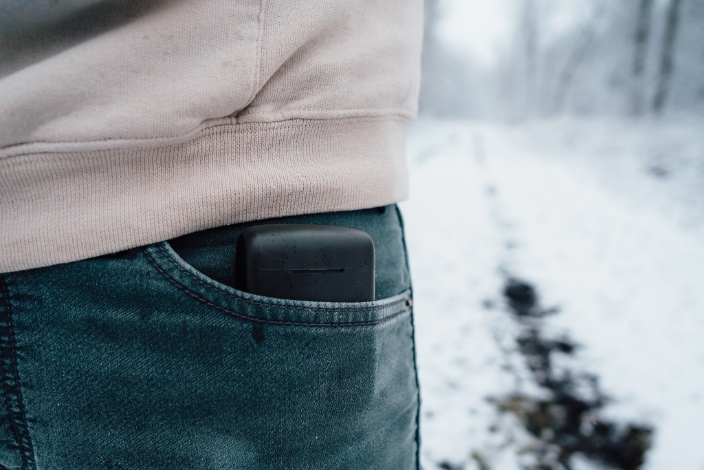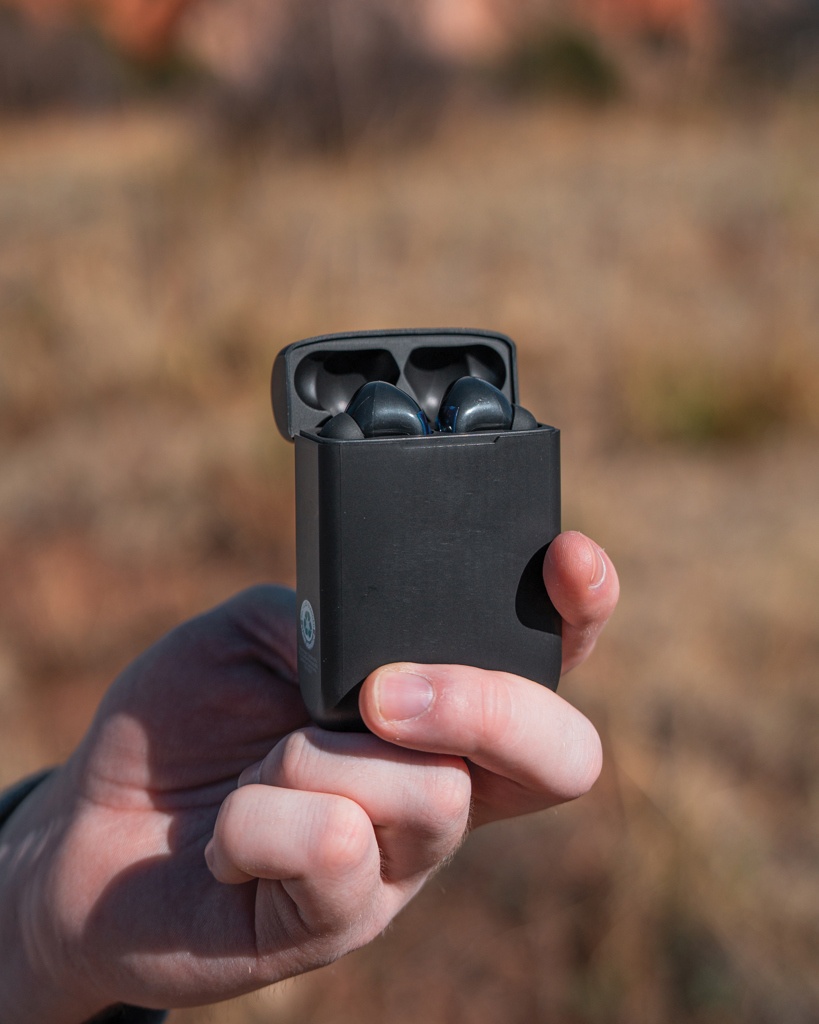 Skywave RCS recycled plastic solar earbuds