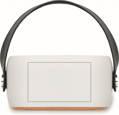 5.0 wireless speaker in ABS with bamboo front and PU strap. 1 Rechargeable Li-ION 500 mAh battery. Output data: 3W and 4 Ohm. Playing time approx. 4 hours. Bamboo is a natural product, there may be slight variations in colour and size per item, which can affect the final decoration outcome.
