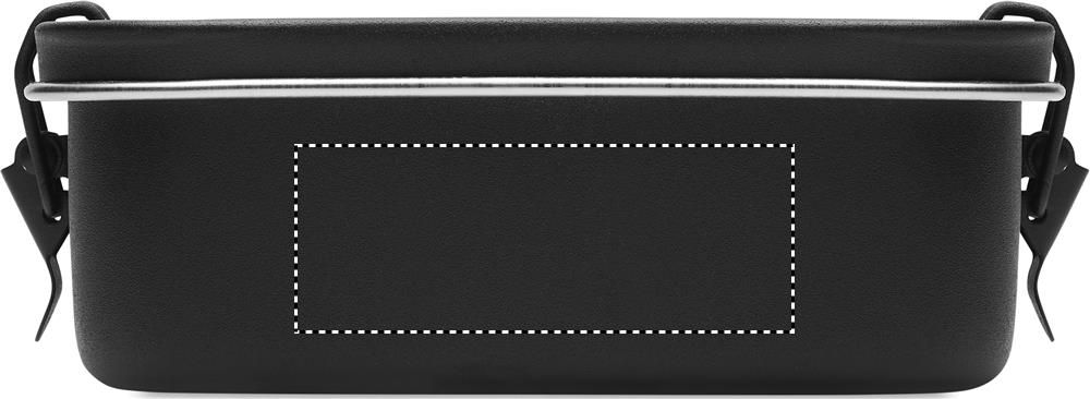 Stainless steel lunch box with strong and secure side buckles. Capacity 750 ml.