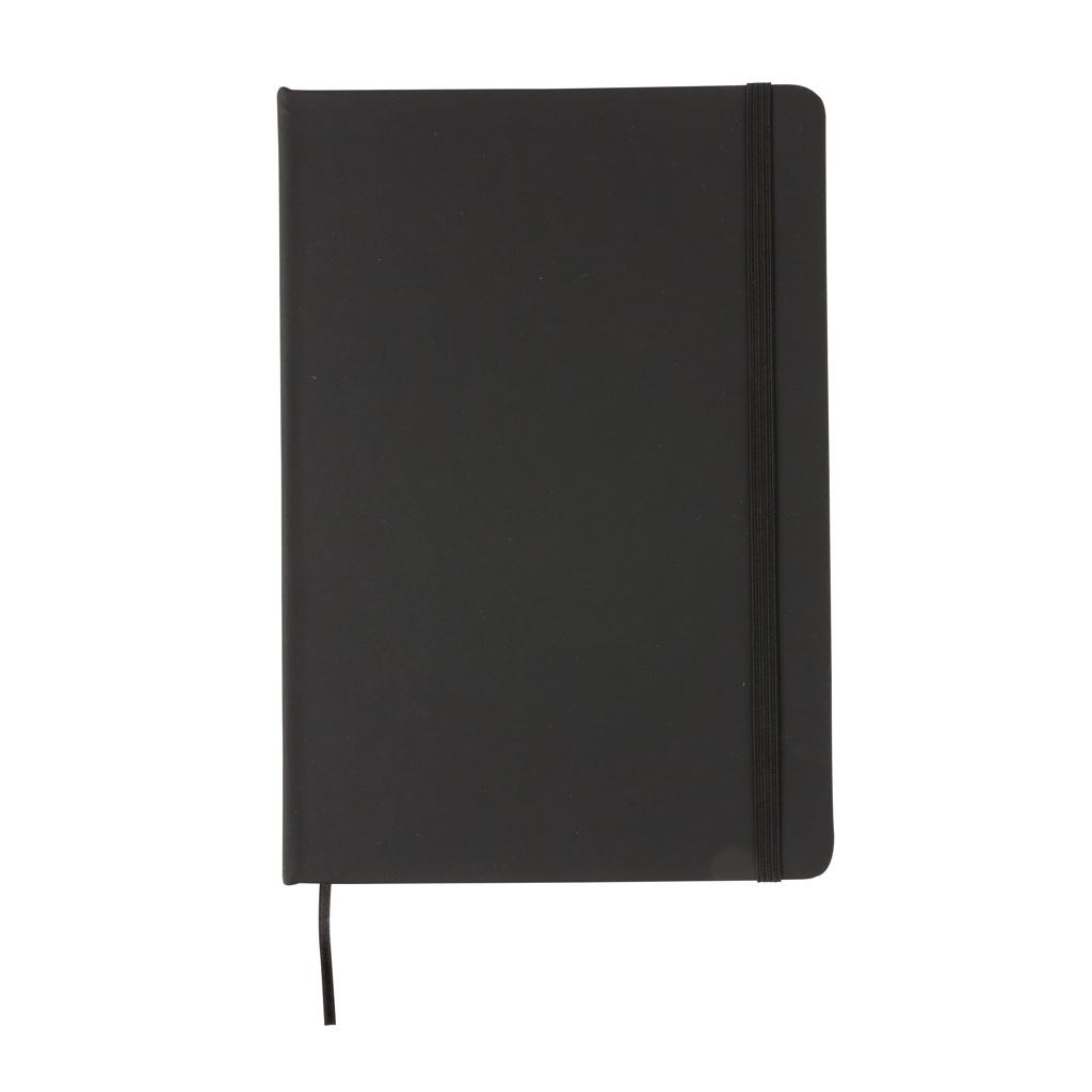Ruled A5 hardcover PU classic notebook with elastic closure and black bookmark ribbon. 144 pages of 70g/m2 paper inside. Cream coloured pages.