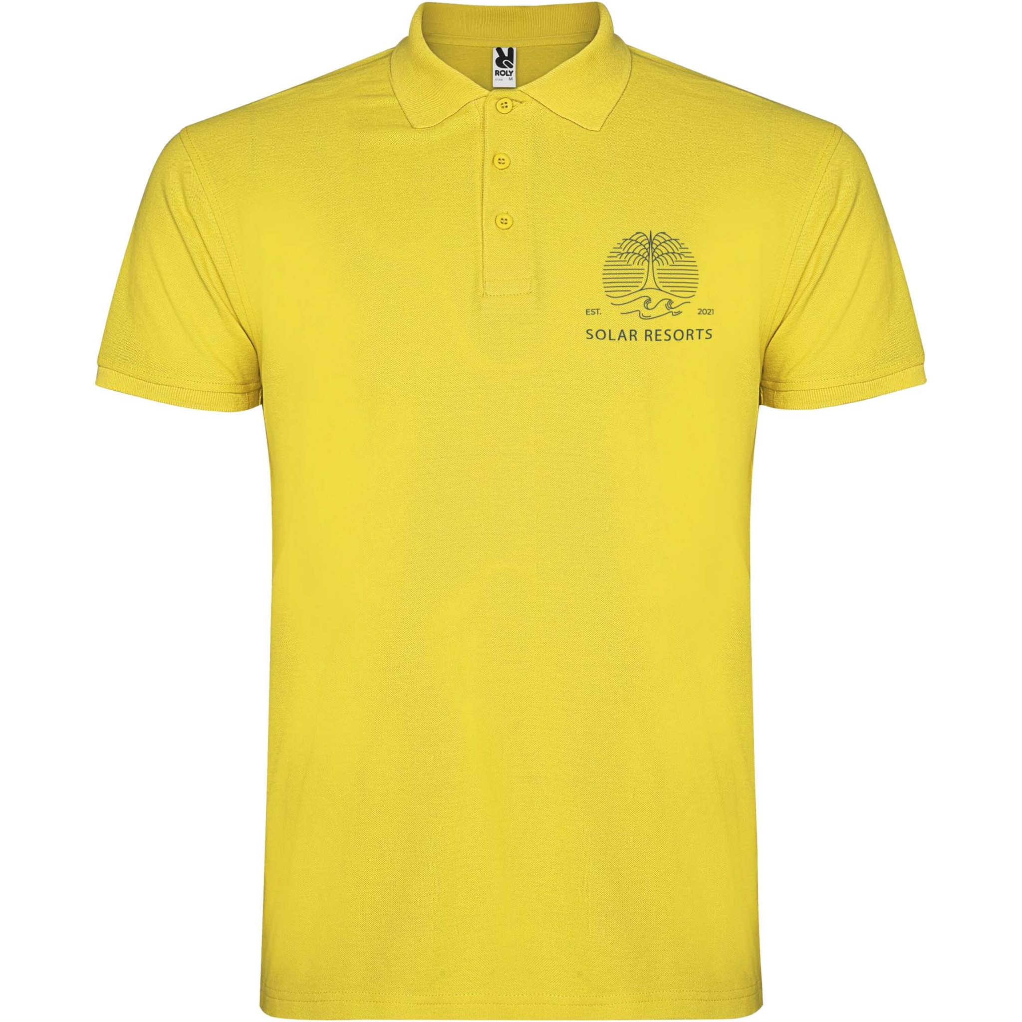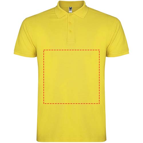 Short-sleeve polo shirt for men. Reinforced covered seams in interior collar. 1x1 ribbed cuffs and collar. Side seams. 3-button placket and side slits. Optional pocket. Removable label. The model is 185 cm and is wearing size L.