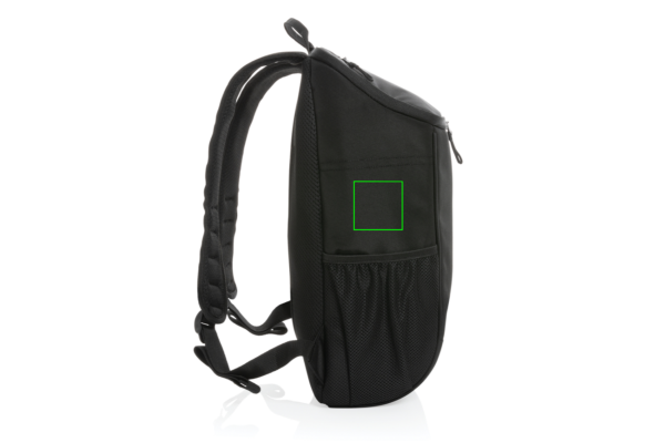 This deluxe Swiss Peak AWARE™ cooler backpack can go wherever a cool drink or meal is needed. The backpack features a wide opening for easy access to your food and drinks. A zippered top pocket ensures you can put all your necessities away. Fits up to 6 bottles or 25 cans. With AWARE™ tracer that validates the genuine use of recycled materials. Each cooler backpack is made with 13.9 PET bottles. 2% of proceeds of each AWARE™ product sold will be donated to Water.org. Composition exterior 100% recycled polyester. Lining in PEVA.