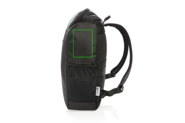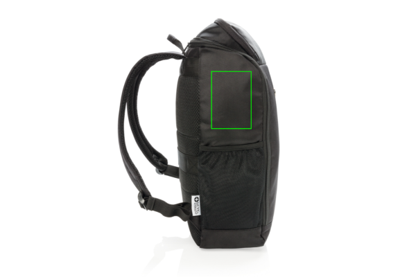 This modern & minimalist recycled polyester laptop backpack accompanies you on every commute through the professional landscape. With deep vertical front pockets and a neat easy wide open zipped lid that reveals a roomy interior complete with sections for both a laptop and an iPad. Includes RFID protected pockets inside. With AWARE™ tracer that validates the genuine use of recycled materials. Each bag has reused 21.4 PET bottles. 2% of proceeds of each Aware™ product sold will be donated to Water.org. PVC free.