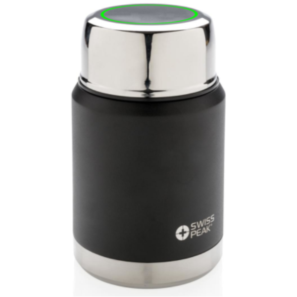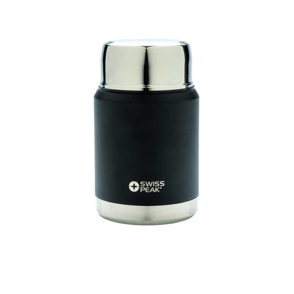 The Swiss Peak Elite series are with vacuum insulation and double wall 18/8 grade stainless steel. The powder coated black colour is built to last! No fading or cracking here! The inner wall is plated with copper for ultimate conductivity to keep drinks hot for 8 hours and cold for 24 hours. This food container keeps your food hot or cold all day long! A 18/8 SS spoon is included. Hand wash only. Leakproof. Content 500 ml.