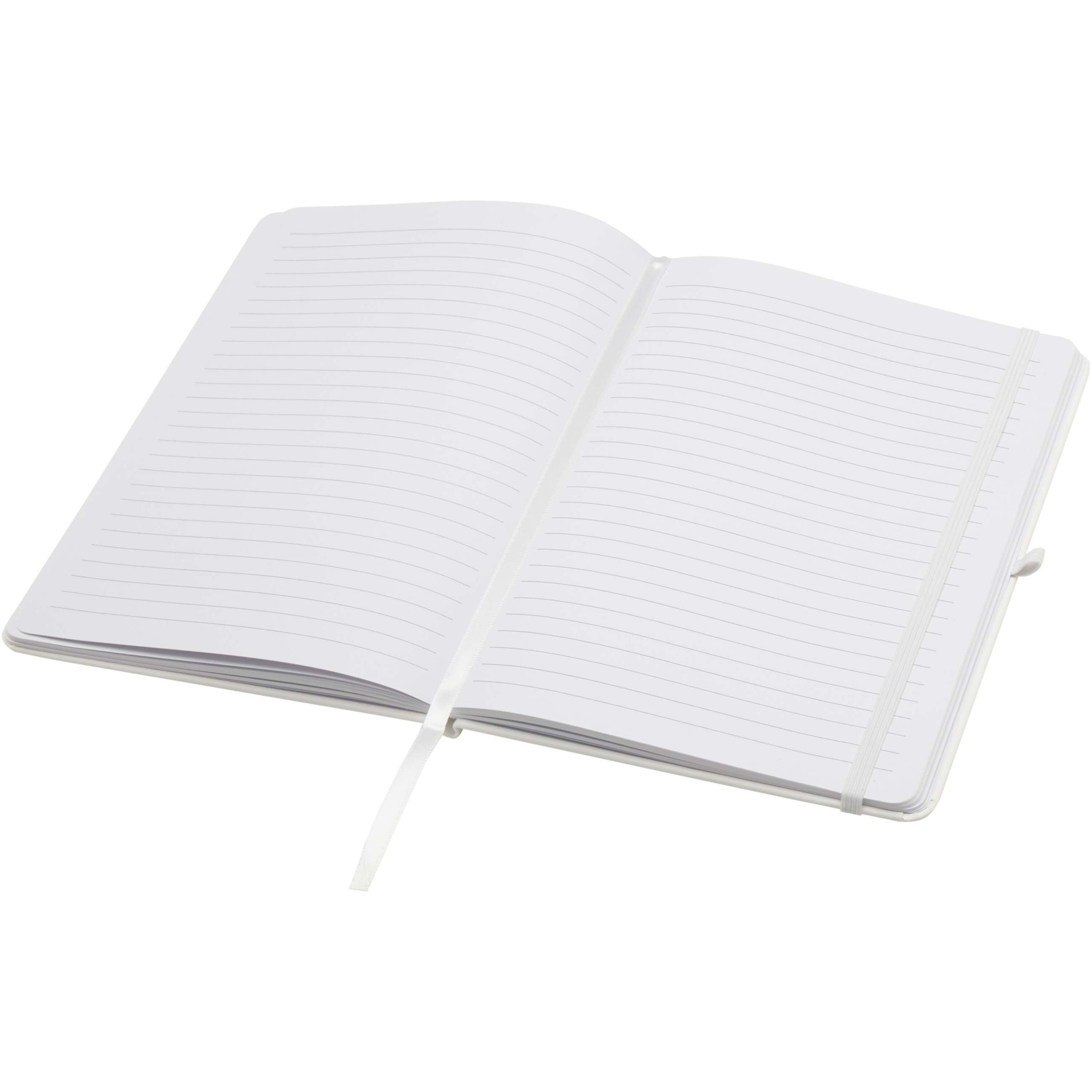 The Teak A5 recycled cardboard hard cover notebook with rounded corners is not only an office essential but also a great opportunity to promote your brand. The notebook has 96 lined sheets of 70 g/m2 paper and a soft-feel cover. Comes with a pen loop, elastic closure, and ribbon marker.