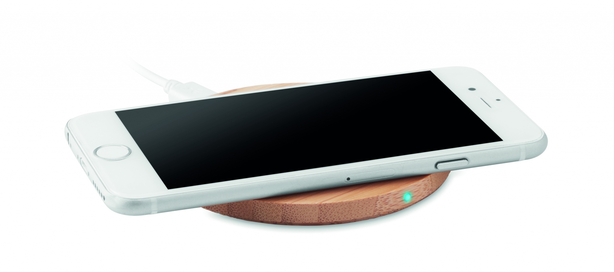 Logotrade promotional merchandise photo of: Wireless charger bamboo 10W RUNDO +