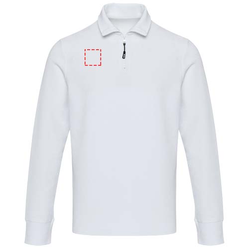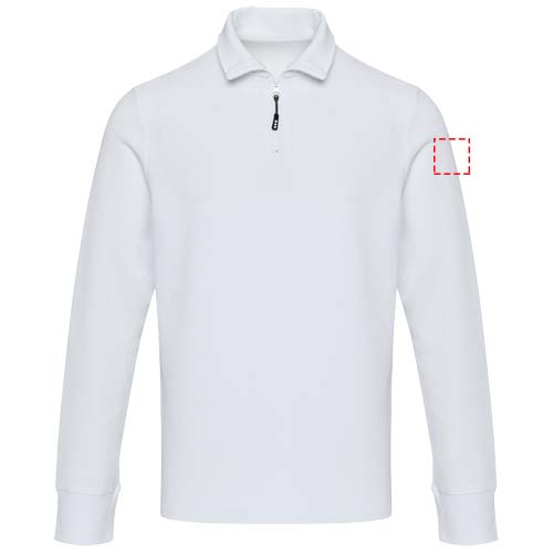 The Zeus unisex long sleeve with half zip is made from 245 g/m² piqué knit in 100% cotton for year-round wear. It features refined pick-stitch detailing, with self-fabric neck tape for added durability and side slits with self-fabric inserts for enhanced mobility. A heat transfer main label ensures label-free comfort. Equipped with AWARE™ traceability technology, this garment includes a digital product passport for verified transparency and sustainability.