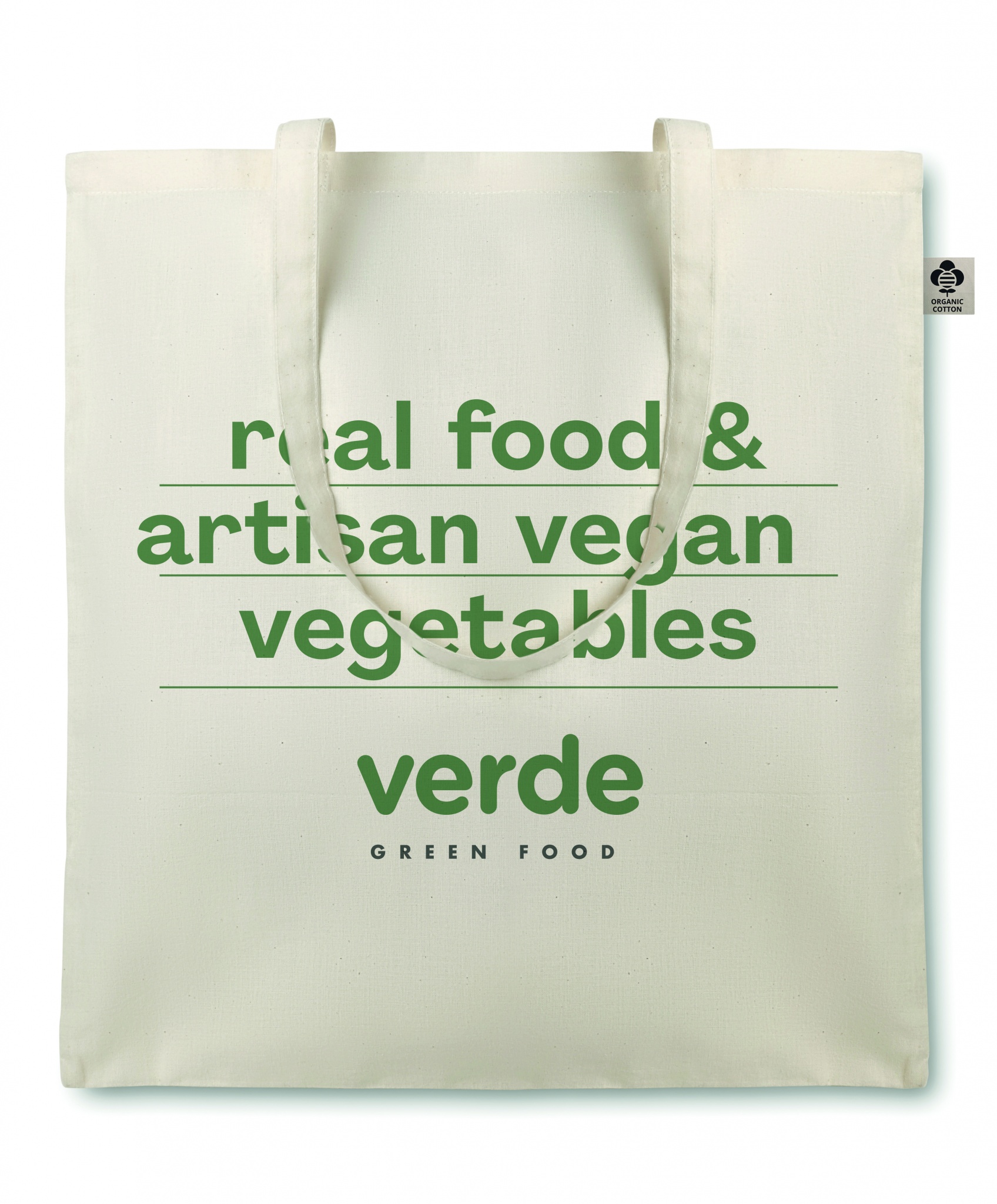 Orgaanilisest puuvillast pikkade sangadega ostukott. 105 gr/m².