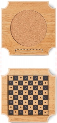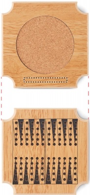 4-st korgist ja MDF-st valmistatud rannaaluse komplekt, sealhulgas 4 mängukomplekti: Tic-Tac-Toe, Backgammon, male ja Hiina kabe. Kork on 100% looduslik materjal. Selle struktuurse olemuse ja pinna poorsuse tõttu võib lõpptulemus eseme kohta esineda kõrvalekaldeid.