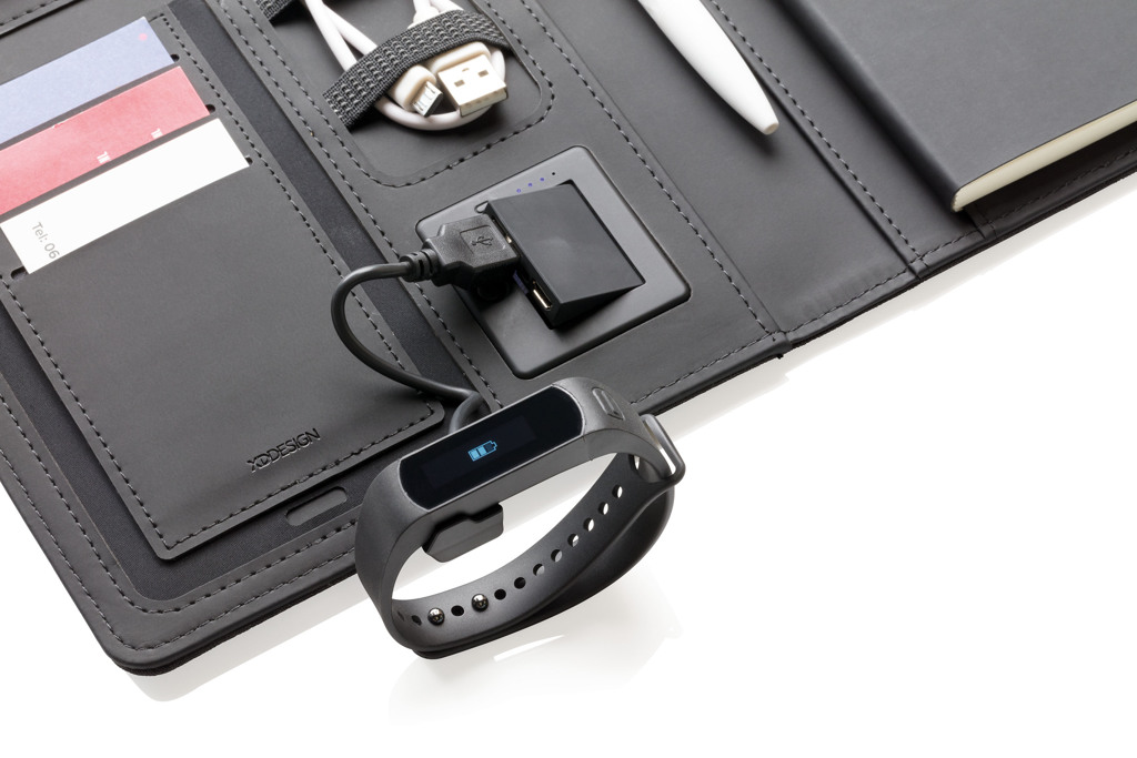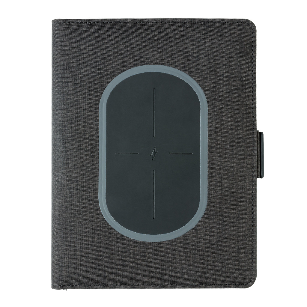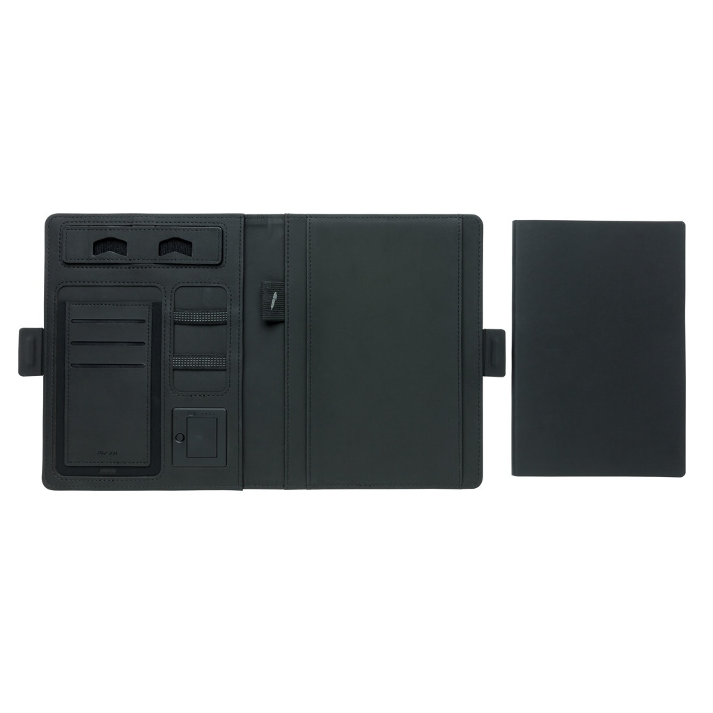 Sellel eemaldatava sülearvutiga sülearvutikaanel (128 joonitud lehekülge 80 g/m²) on uusim tehnoloogia. Esikaanel on juhtmevaba laadimisalus teie telefoni jaoks. (Androidi uusimad põlvkonnad, iPhone 8 ja uuemad). Vanemaid telefone ja tahvelarvuteid saab laadida USB-portide kaudu 4000 mAh akupangast. Unikaalsed USB-pordid avanevad ühe nupuvajutusega. Sisend: 5.0V/1.0A. Väljund: 5,0V/2,1A. Juhtmeta väljund: 5W. Registreeritud disain®