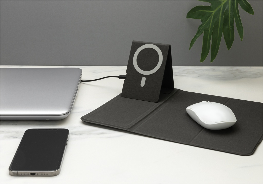 Lame ja kokkupandav 10 W juhtmevaba laadija hiirepadi. PU materjalist laadijat saab kasutada nii tasapinnaliselt kui ka alusena. Kogu hiirepadja saab kokku voltida, nii et seda on lihtne kõikjale kaasa võtta. 10 W juhtmevaba laadija ühildub kõigi QI seadmetega (Iphone 8 ja uuemad ning Android seadmed) Type-C sisend 9V/2A; Juhtmeta väljund 9V/1,1A; Type-C väljund 9V/2A; Kaasa arvatud PVC-vaba TPE laadimiskaabel. Integreeritud 19 tk kvaliteetset N52H kuumakindlat magnetit. Registreeritud disain. Kaasa arvatud 120 cm PVC-vaba TPE materjalist C-tüüpi kaabel. Registreeritud disain
