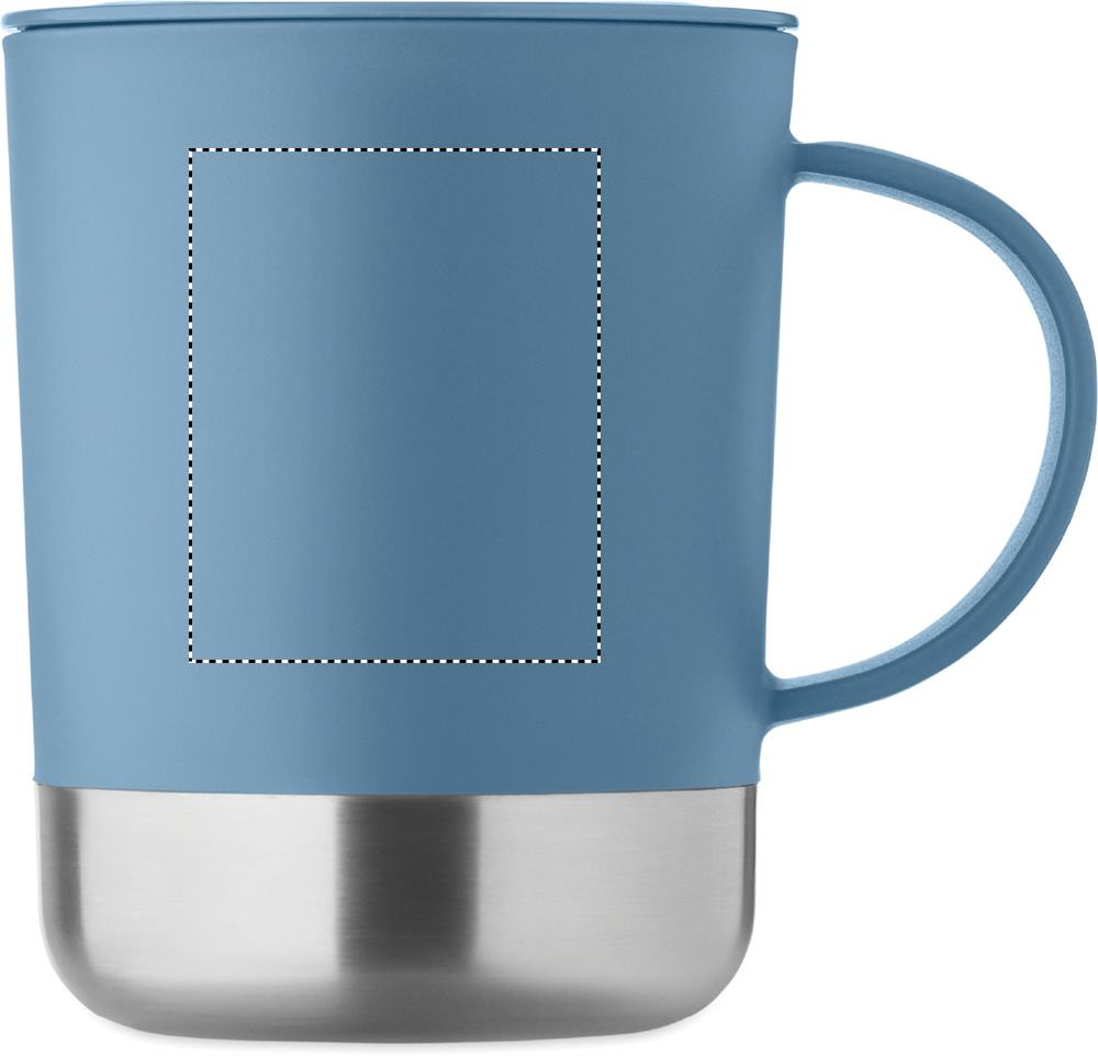 PP kruus taaskasutatud roostevabast terasest põhjaga (90% taaskasutatud roostevabast terasest ja 10% roostevabast terasest) ja PP libistatava kaanega. Mahutavus: 300 ml.