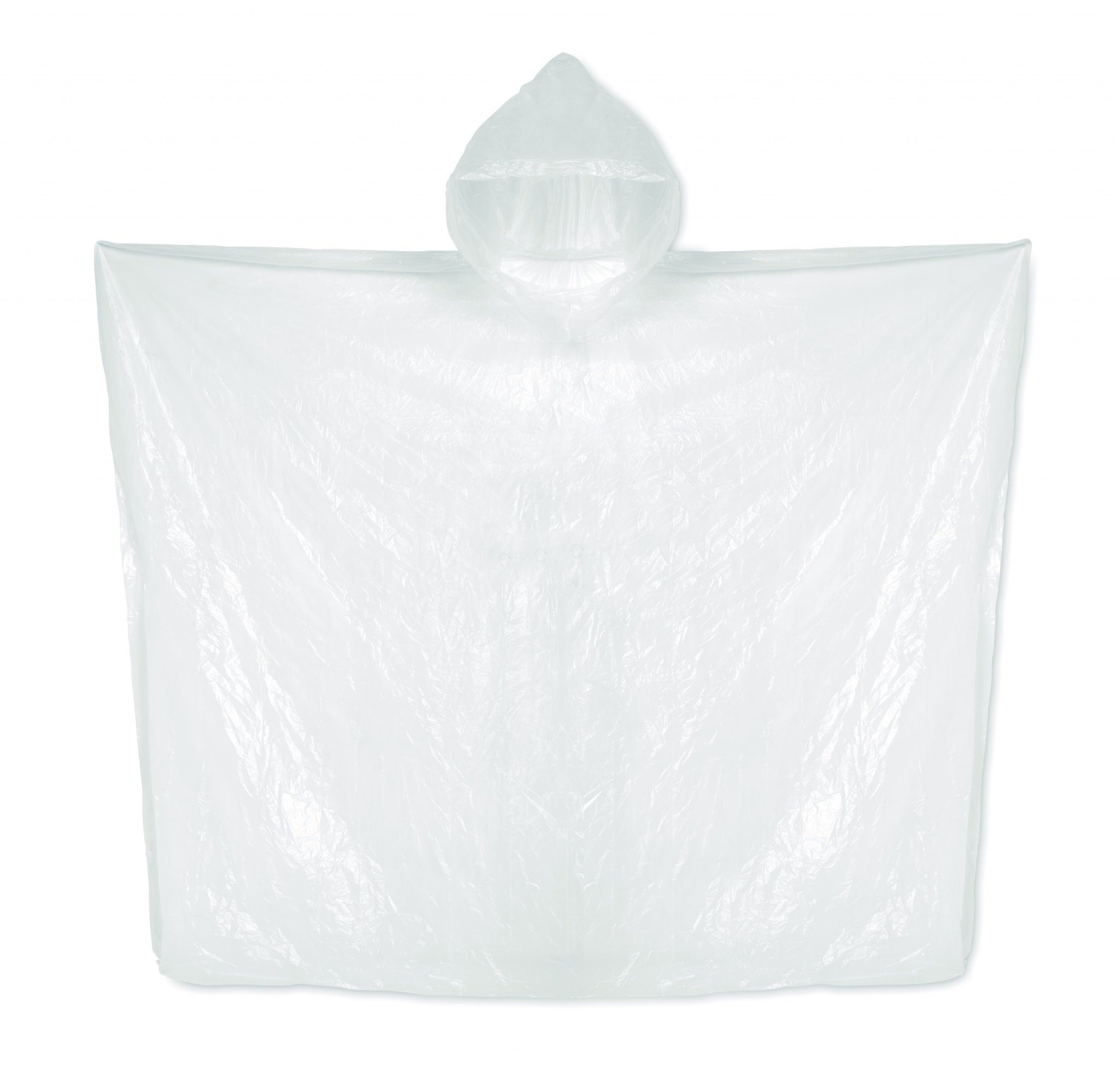 Biolagunevast materjalist kokkupandav kapuutsiga pontšo ja lisaks pakitud biolagunev kott.
