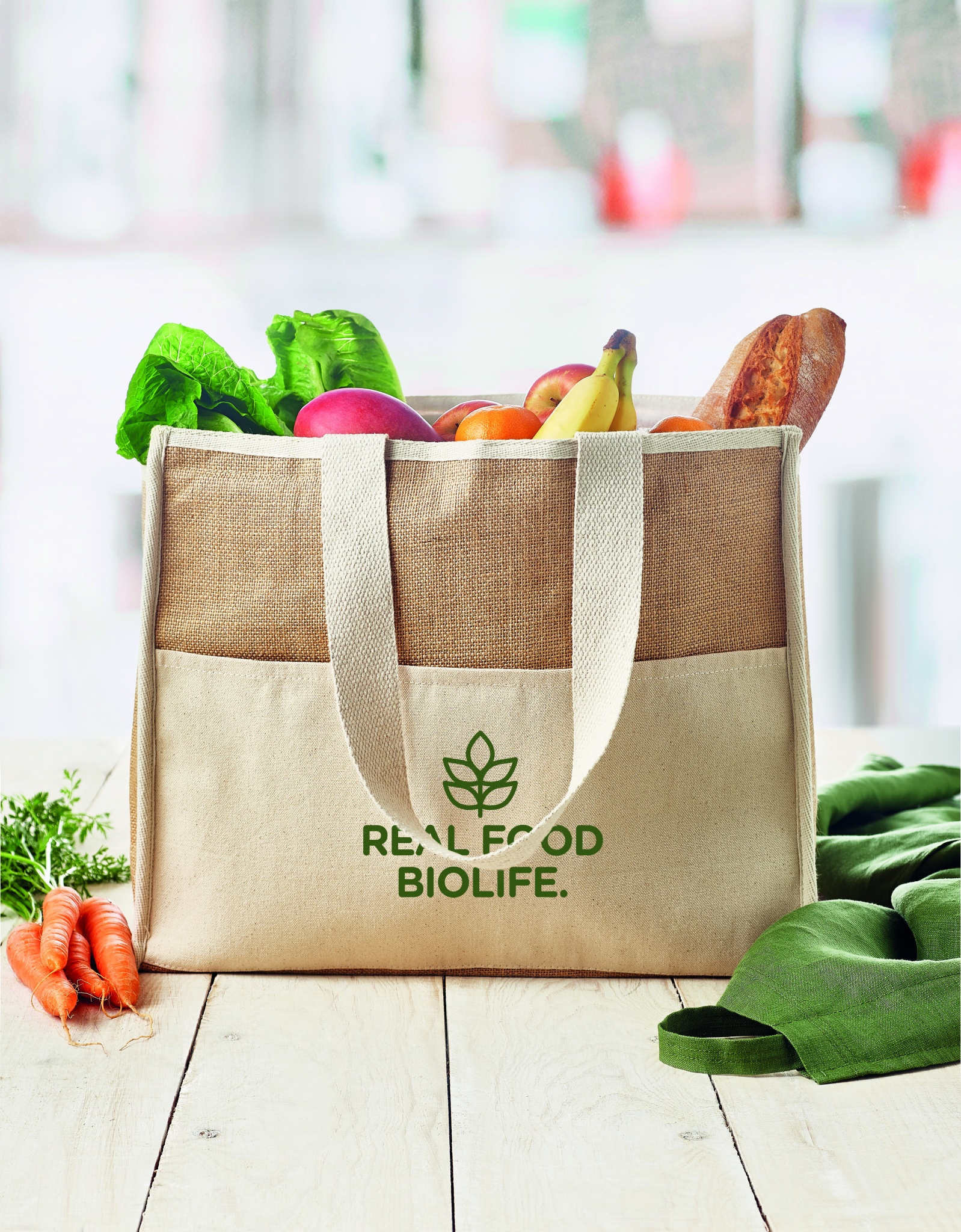 Džuudist ostu- ja külmakott pikkade sangadega, lamineeritud ja konksu ja aasaga, ees lõuenditasku ja puuvillase vööga.