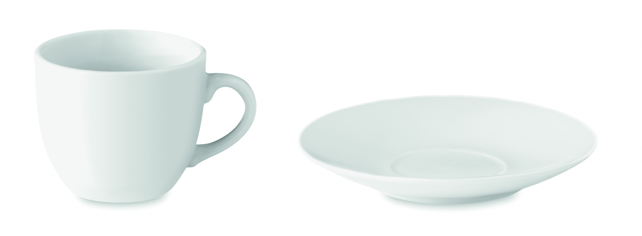 Portselanist espressotass ja alustass. Tassi maht: 80 ml. Masspakend. Tampprint ei ole nõudepesumasinas pestav. Keraamiline ülekanne on nõudepesumasinas pestav.