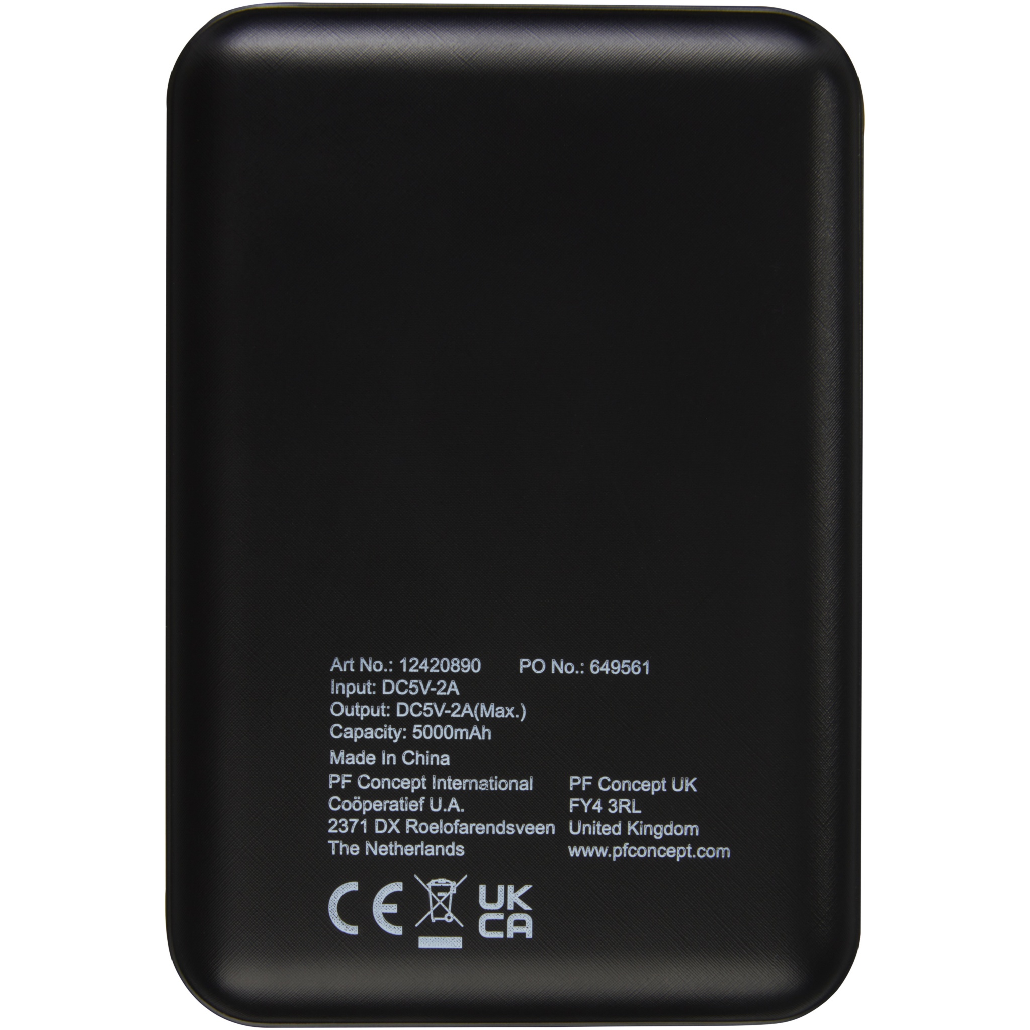 Lame ja vastupidav akupank 5000 mAh polümeerakuga. Esipaneelile saab lasergraveerida, mis süttib logo, kui toitepank on sisse lülitatud või kasutamisel. Väljund: 5V/2A. Sisend: 5V/2A. Jätkusuutlikkuse eesmärgil ei pakuta lisakaablit.