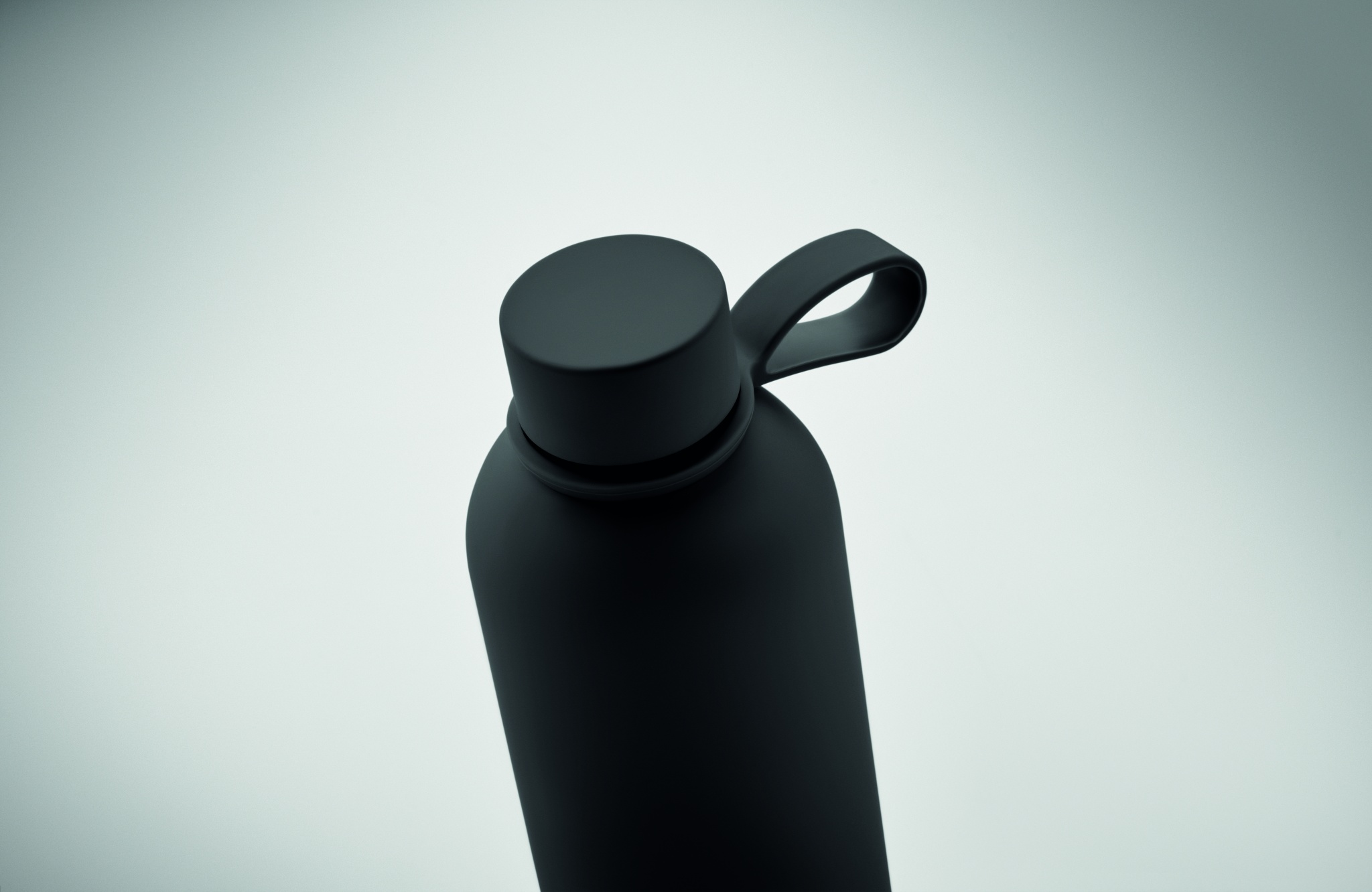 Taaskasutatud roostevabast terasest (90% taaskasutatud roostevabast terasest ja 10% roostevabast terasest) topeltseinaga vaakumisolatsioonipudel kummiviimistluse ja silikoonkäepidemega. Mahutavus: 500 ml.