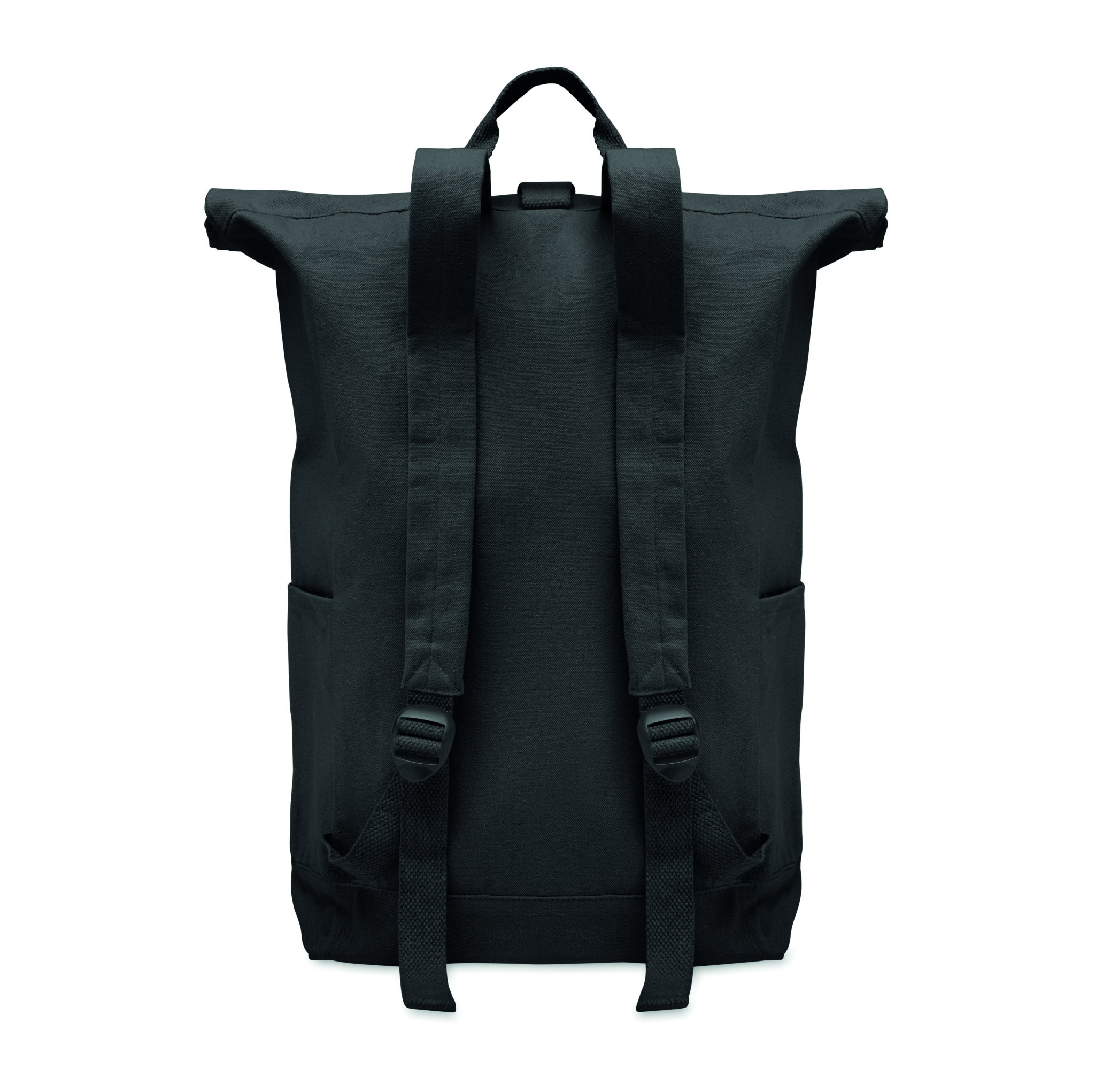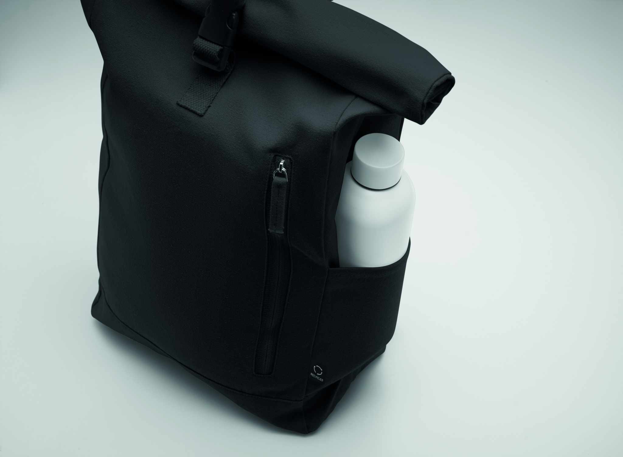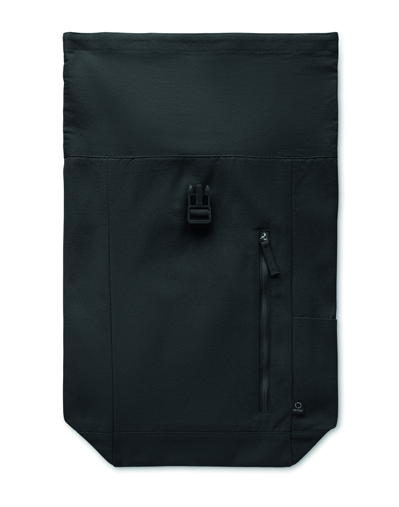 Must rull seljakott 390 gr/m² taaskasutatud puuvillast (80%) ja taaskasutatud polüestrist (20%). Tõmblukuga esitasku.