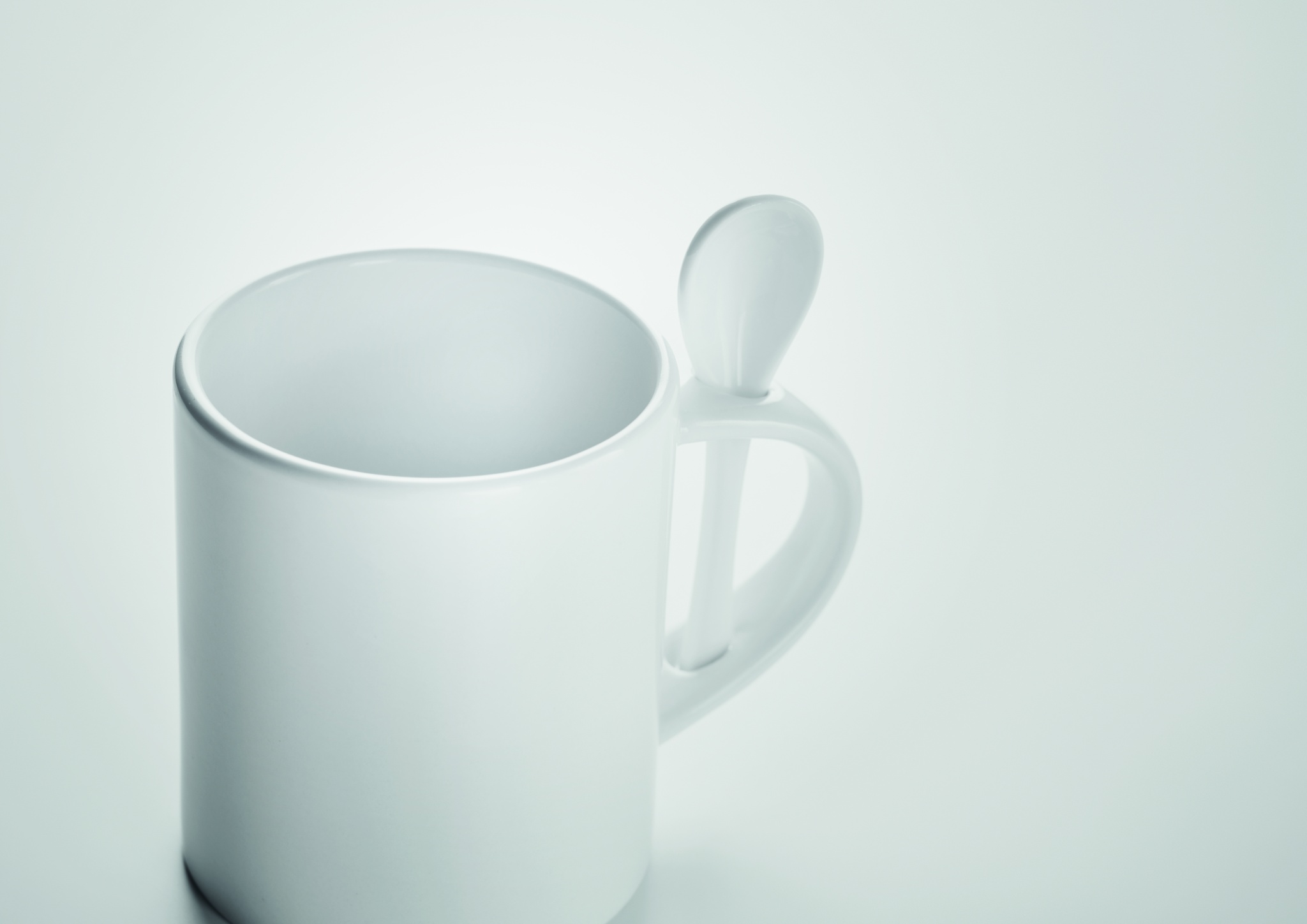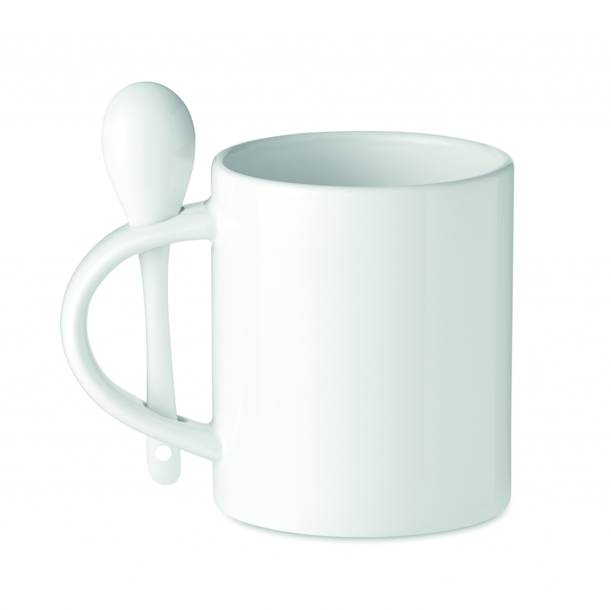 Spetsiaalse kattega keraamiline kruus ja lusikas sublimatsioonitrüki jaoks. Lusikat hoitakse käepidemes. Mahutavus: 300 ml.