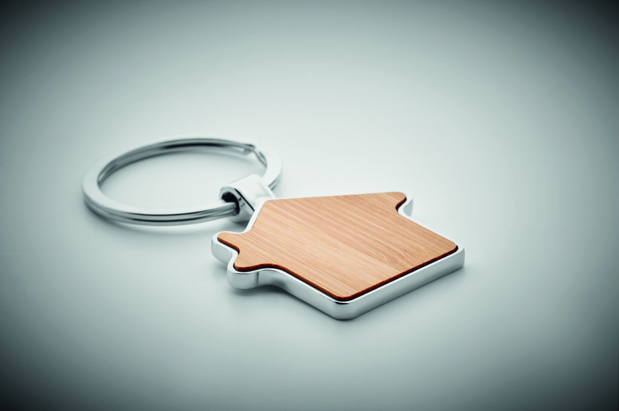 Majakujuline tsingisulamist võtmehoidja bambusest esiküljega. Bambus on looduslik toode, ühe eseme värvis ja suuruses võib esineda väikesi erinevusi, mis võivad mõjutada lõppviimistlust.
