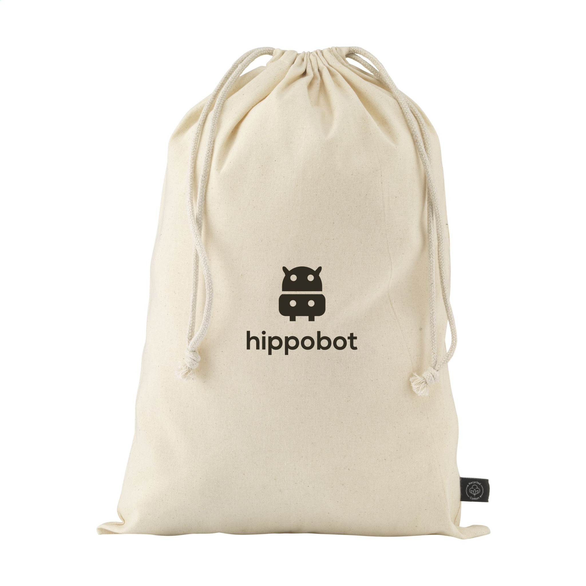 Logotrade firmakingituse foto: Naturaalsest GRS-i taaskasutatud puuvillast kingikott (150 g/m²) L