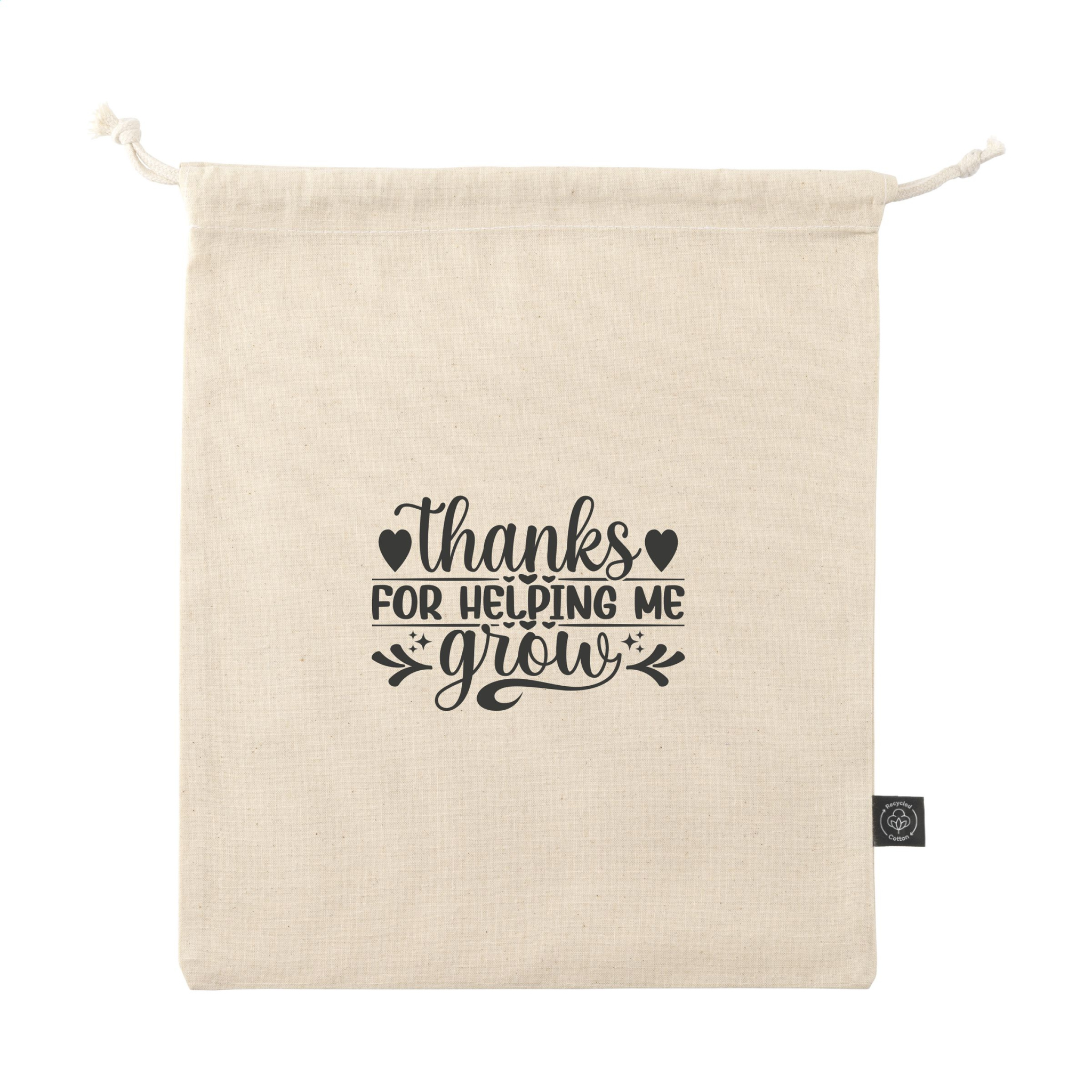 Logo trade reklaamtooted foto: Naturaalsest GRS-i taaskasutatud puuvillast kingikott (150 g/m²) M