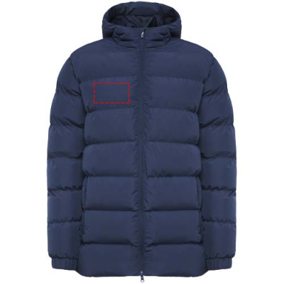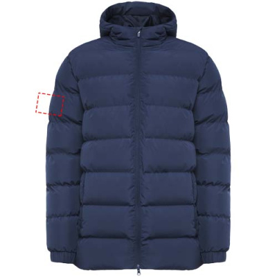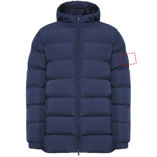 Polsterdatud spordiparka. Kapuuts tipuga. Ees tõmblukk koos sobiva tõmbaja ja lõuakaitsega. Elastsed kätised. Kaks lukuga küljetaskut. Sisemine vasak rinnatasku. Sisemine juurdepääs ümbertöötlemiseks. Eemaldatav etikett. Veekindel. Tuulekindel.