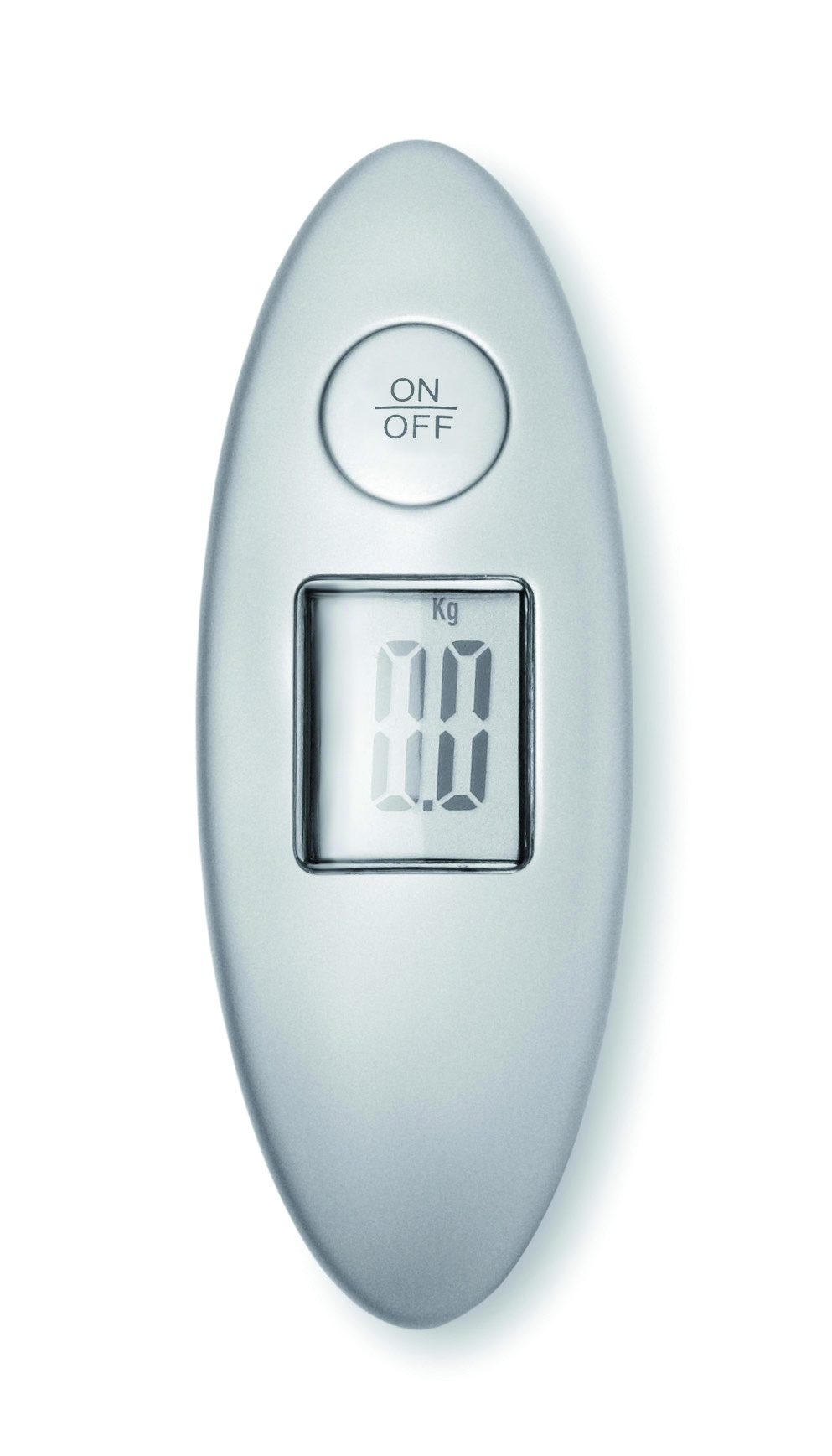 ABS-korpuses pagasikaal. Maksimaalne kandevõime: 40 kg. Ühiku mõõt kilogrammides või naelades. Toiteallikaks on 1 aku. Individuaalne pakend hõbedases pappkarbis.