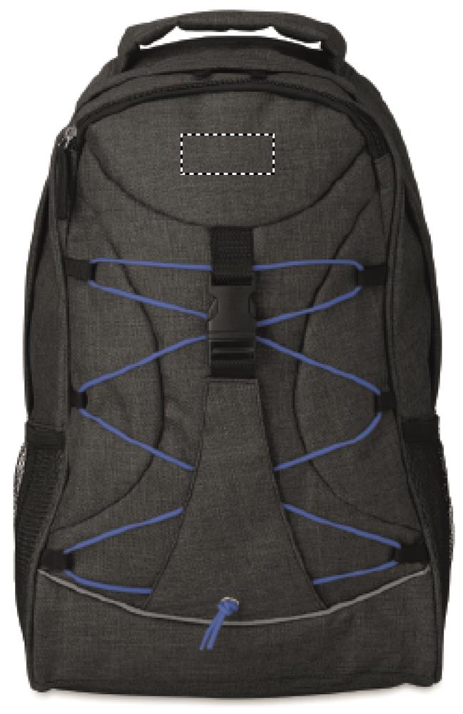 600D 2-toonist polüestrist seljakott, millel on värviline kontrastne pealispind ja helendav esipaneelil olev tumedas nööris. Võrktaskud mõlemal küljel.