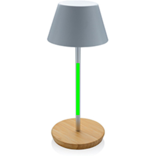 Luksuslik laualamp, mis on valmistatud RCS-sertifikaadiga taaskasutatud ABS-plastist, taaskasutatud alumiiniumist ja FSC-sertifikaadiga 100% bambusest. Taaskasutatud kogusisaldus: 40% eseme kogukaalust. RCS-sertifikaat tagab taaskasutatud materjalide täielikult sertifitseeritud tarneahela. Laualamp töötab ühe laadimisega kuni 18 tundi ja seda saab uuesti laadida 2 tunniga. A-klassi 1800 mAh aku ja C-tüüpi sisendiga (5V/1A) Kahe režiimiga (soe valgus ja valge valgus), mida saab reguleerida põhjas oleva puuteanduriga. Taaslaetav USB-C kaudu. Pakitud FSC® segupakendisse. IPX 4 veekindel.