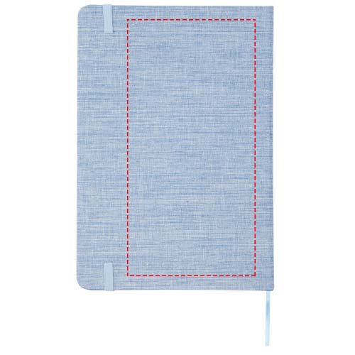 Taaskasutatud puuvillast kõvakaaneline A5 märkmik 80 joonelise paberilehega 70 g/m². Märkmikul on elastne sulgur, pael ja ümarad nurgad.