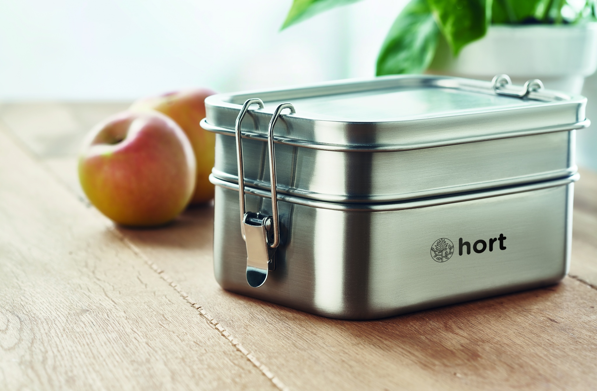 Roostevabast terasest lõunasöögikarp 2 lahtrit tugevate ja kindlate küljepandlaga. Mahutavus 1200 ml.