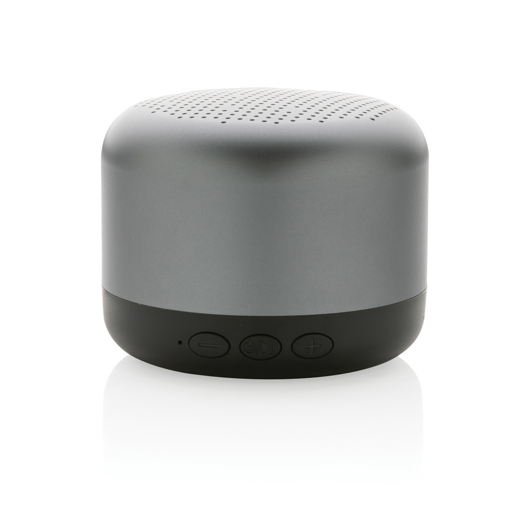 5 W juhtmevaba kõlar, mis on valmistatud RCS (Recycled Claim Standard) sertifitseeritud taaskasutatud alumiiniumist ja ABS-ist. Taaskasutatud kogusisaldus: 35% eseme kogukaalust. RCS-sertifikaat tagab taaskasutatud materjalide täielikult sertifitseeritud tarneahela. Alumiinium ei kaota ringlussevõtu käigus oma omadusi ja seda saab ringlusse võtta lõputult. Sisaldab taaskasutatud C-tüüpi laadimiskaablit, mis on valmistatud RCS-sertifikaadiga taaskasutatud alumiiniumist, TPE-st ja PET-st. Pakitud FSC® segupakendisse. 600 mah aku võimaldab mängida kuni 4 tundi ja seda saab täielikult laadida 2 tunniga. BT 5.0-ga sujuvaks ühenduseks kuni 10 meetrit.