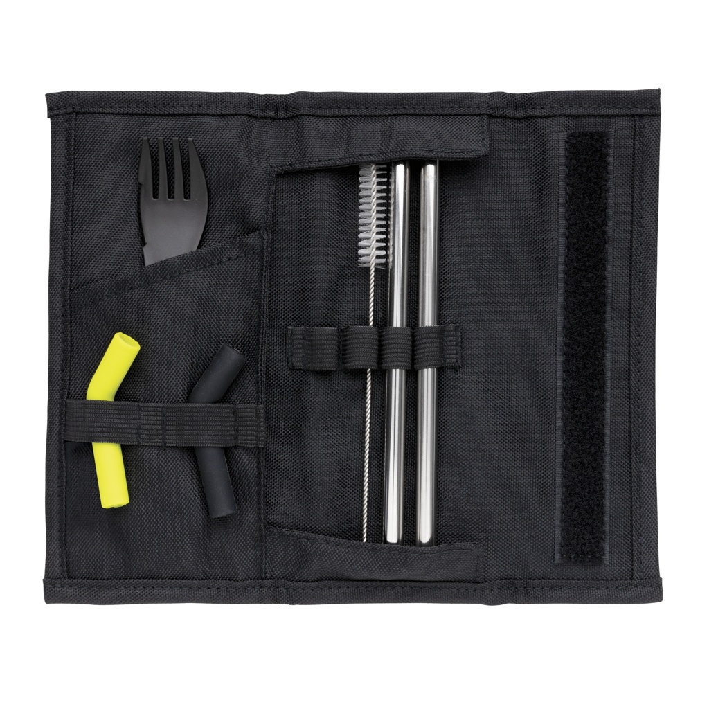 Tierra 2tk õled ja söögiriistad kotis, must