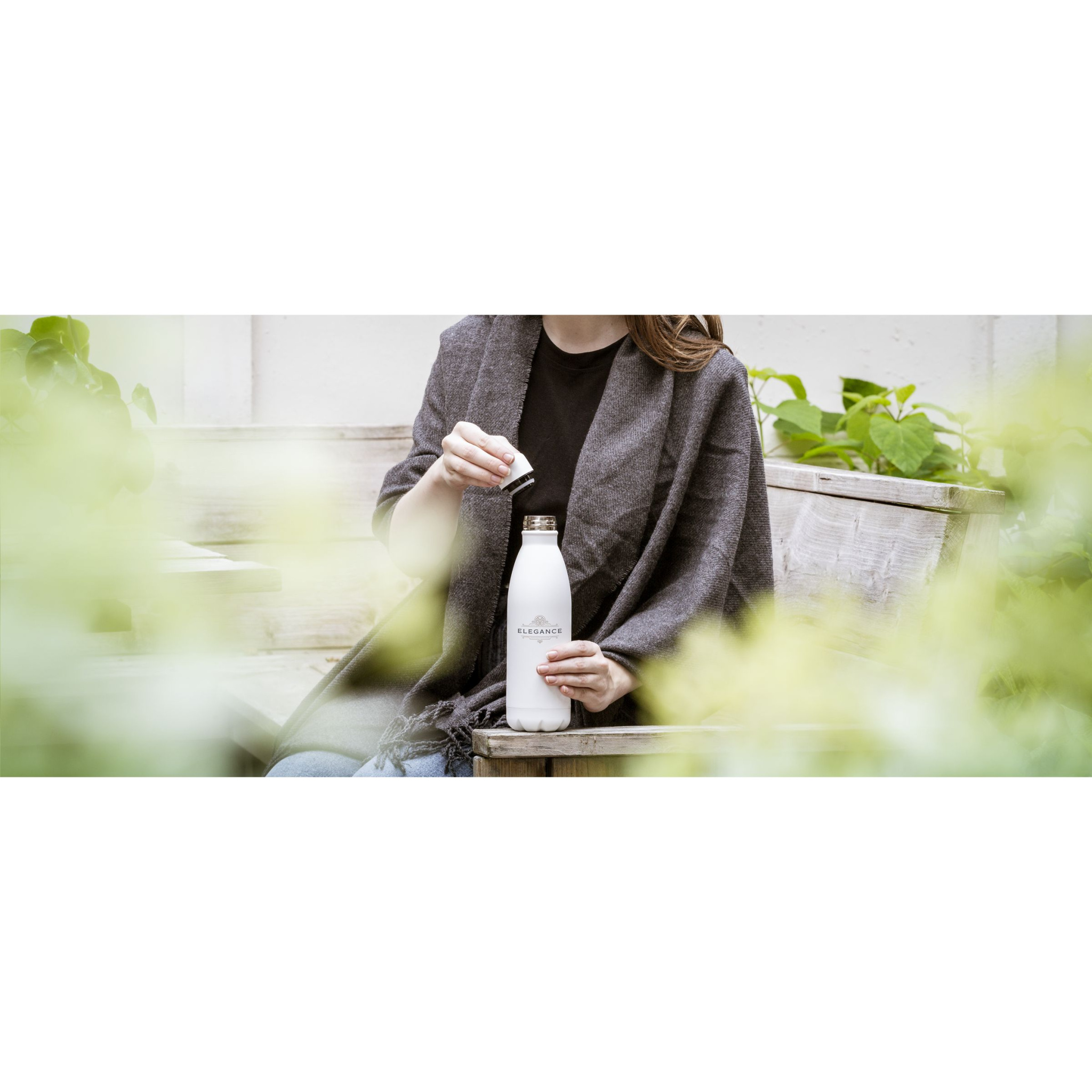 Vau! Topeltseinaga lekkekindel vee-/termospudel, mis on valmistatud taaskasutatud roostevabast terasest. Kaasaegse mattviimistlusega ja sobiva keeratava korgiga pudel on silmatorkava välimusega. See õhuke pudel sobib paljude autode topsihoidjatega ja on ideaalne janukustutaja liikvel olles. RCS-sertifikaadiga. Kokku taaskasutatud materjal: 85%. Mahutavus 500 ml. Roostevaba terast saab mitu korda ringlusse võtta, säilitades samal ajal materjali kvaliteedi. Taaskasutatud roostevaba terase kasutamisel on vaja vähem uusi tooraineid. See tähendab väiksemat energiatarbimist ja vähem veekasutust. Vastutustundlik valik. Iga toode tarnitakse eraldi pruunis pappkarbis.