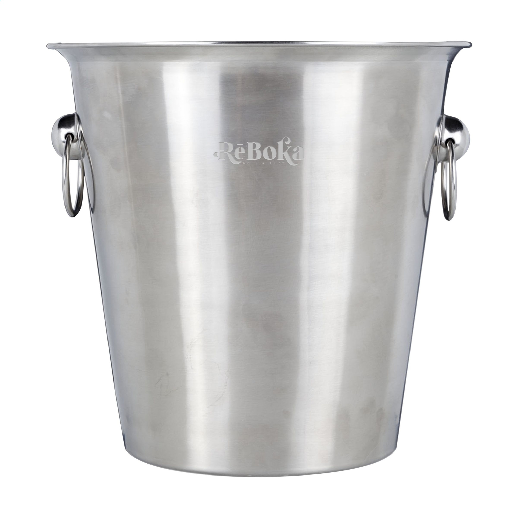 Kerge, roostevabast terasest šampanjajahuti/jääämber rõngaskäepidemetega. Jookide jahutamiseks täitke jää või veega. See jahuti annab šampanja- või veinipudeli esitlemisel isikupärase ilme. Praktiline jääämber, mida saab kasutada erinevatel puhkudel. Mahutavus 4,5 liitrit.