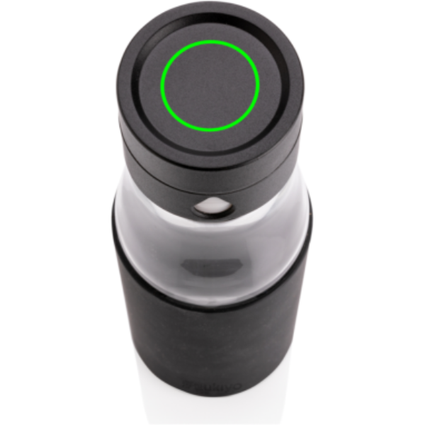 Logotrade firmakingi foto: Ukiyo klaasist hüdratatsiooni jälgiv varrukaga pudel