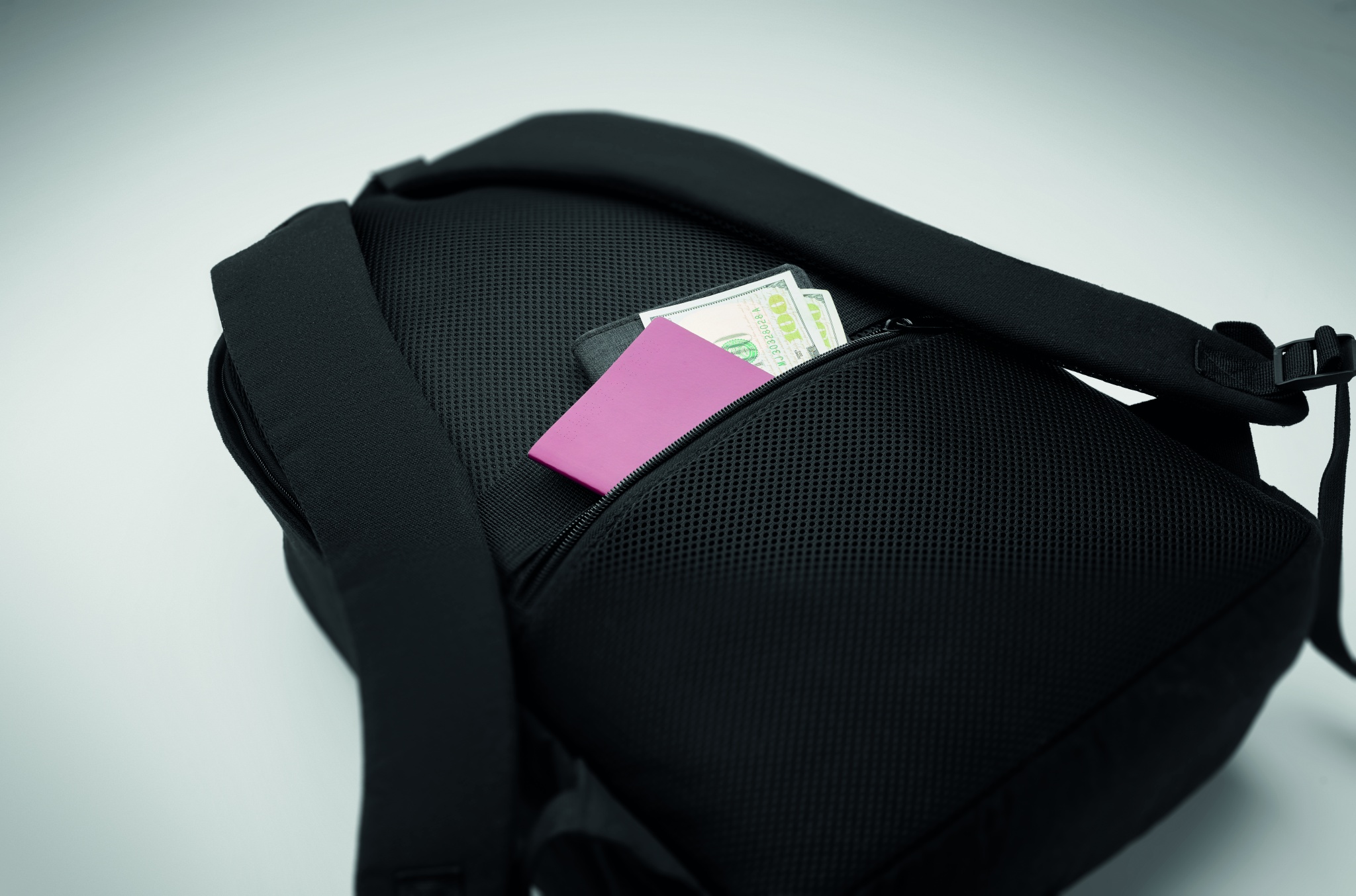 15 tuuman kannettava reppu kierrätetystä esikulutetusta puuvillasta ja kierrätetystä polyesteristä mukautettavalla painatuksella, Musta