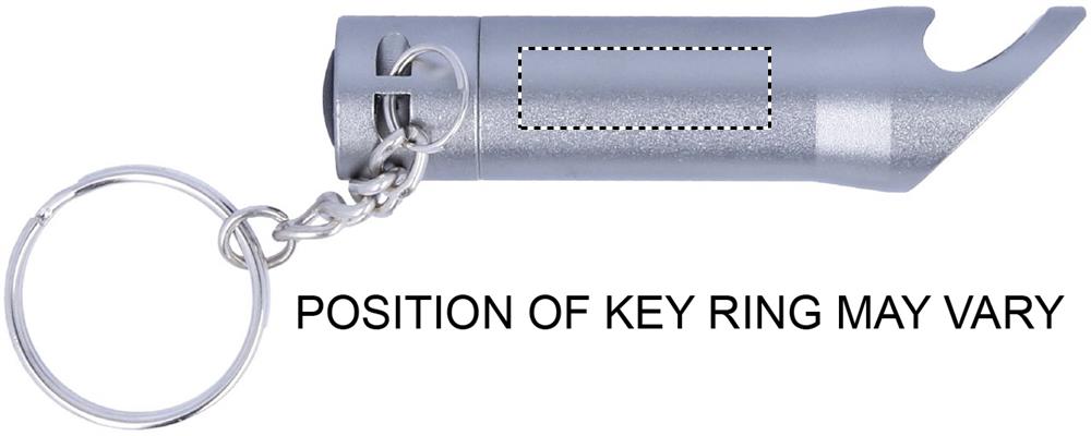 Metallinen LED-taskulamppu avaimenperä, pullonavaajalla. Patterit eivät sisälly toimitukseen.
