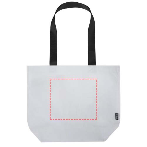Kaksinkertaisella, laminoidulla pohjalla varustettu Duo-kassi on valmistettu 150 g/m2:n GRS-sertifioidusta kaksoislaminoidusta RPET-materiaalista, ja se on kestävä ja veden pitävä. Siinä on tilava avoin päälokero, tukevat, vahvistetut kahvat ja leveä pohja lisäkapasiteettia varten. Kantokyky jopa 10 kg. Kassi on tyylikäs ja luotettava vaihtoehto päivittäisille ostoksille, messuille tai mainostilaisuuksiin. Tilavuus: 18 litraa.