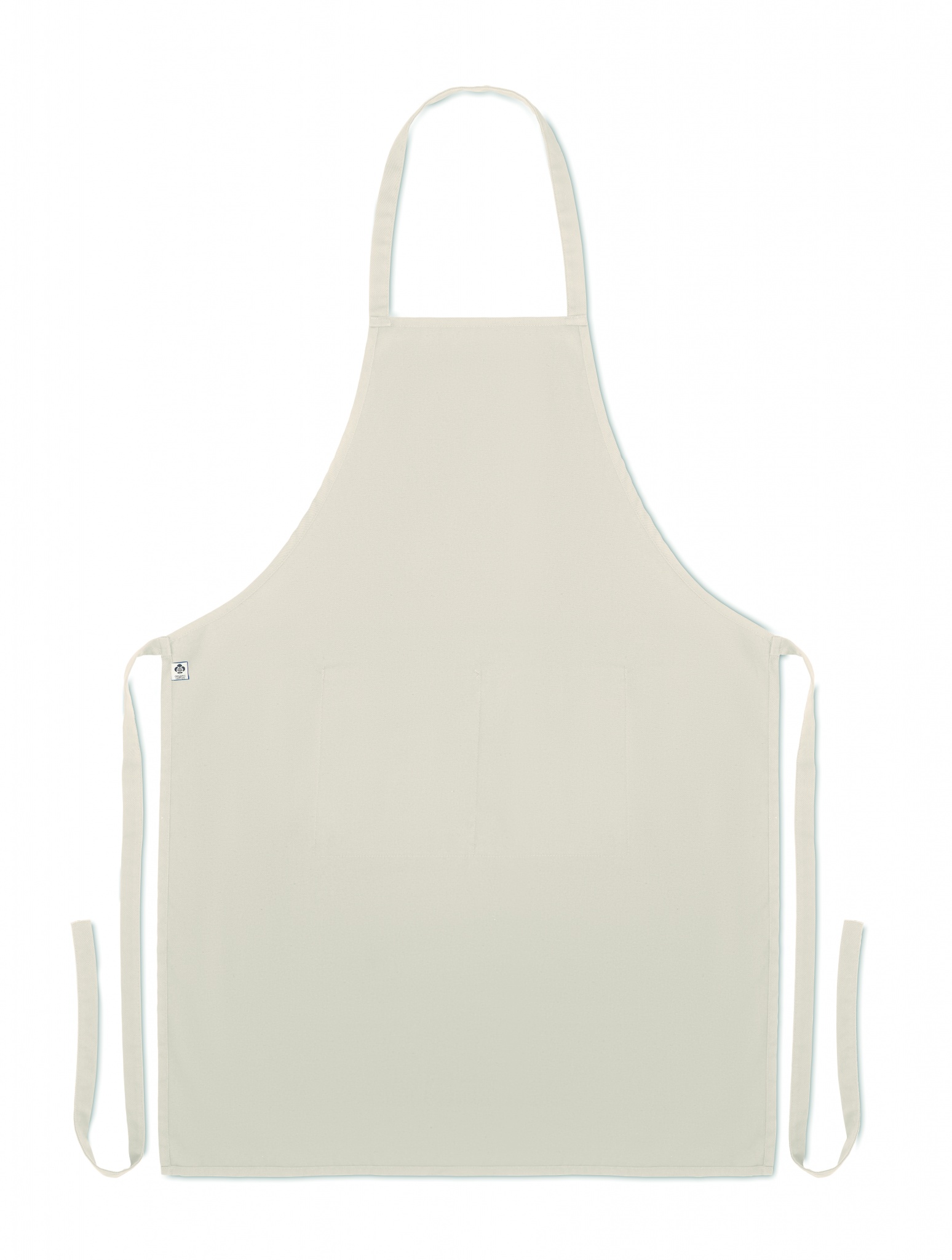 200 gr/m² orgaanisesta puuvillasta valmistettu esiliina, 2 etutaskulla.