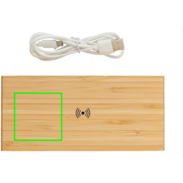 5W langaton laturi ja herätyskello bambuisella ulkokuorella ja 24-tunnin näytöllä. Takapuolella USB portti langallista latausta varten. Sisältää 150 senttisen PVC vapaan TPE micro USB kaapelin. Sopii yhteen kaikkien QI-sopivien laitteiden, kuten uusimpien Android ja iPhone -puhelimien, kanssa. Sisääntulo 5V/1.5A; langaton ulostulo 5V/1A - 5W; 1 USB portti, 5V/1A
