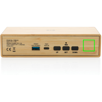 Logo trade mainostuote kuva: Herätyskello ja 5W langaton laturi bambusta